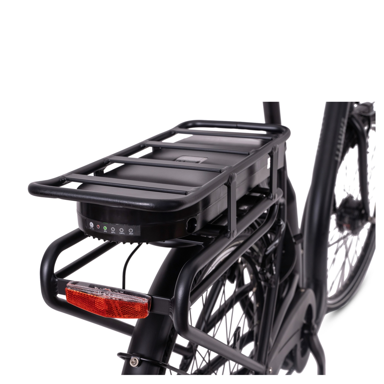 Der 13 Ah Akku sorgt für bis zu 90 km Reichweite und ist sicher im Gepäckträger verstaut