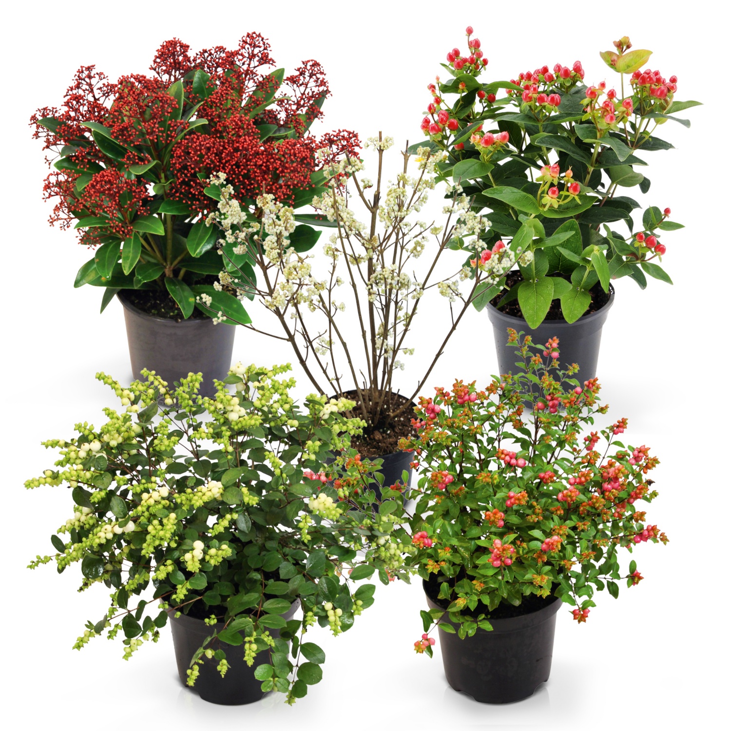 im 19-cm-Kulturtopf, Höhe: 40-55 cm (je nach Sorte), verschiedene Sorten wie Snowstar, Skimmia japonica Rubella, Callicarpa Profusion etc.