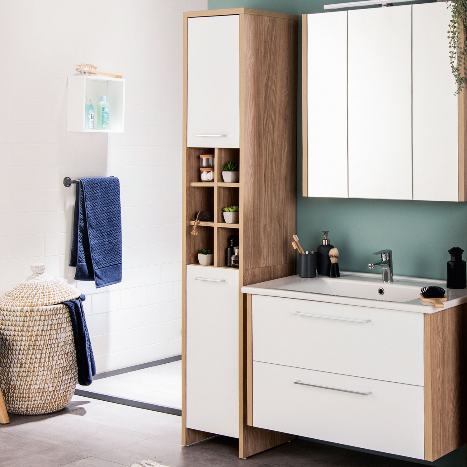 • Farbkombination aus Eiche-hell-Dekor und kreideweiß