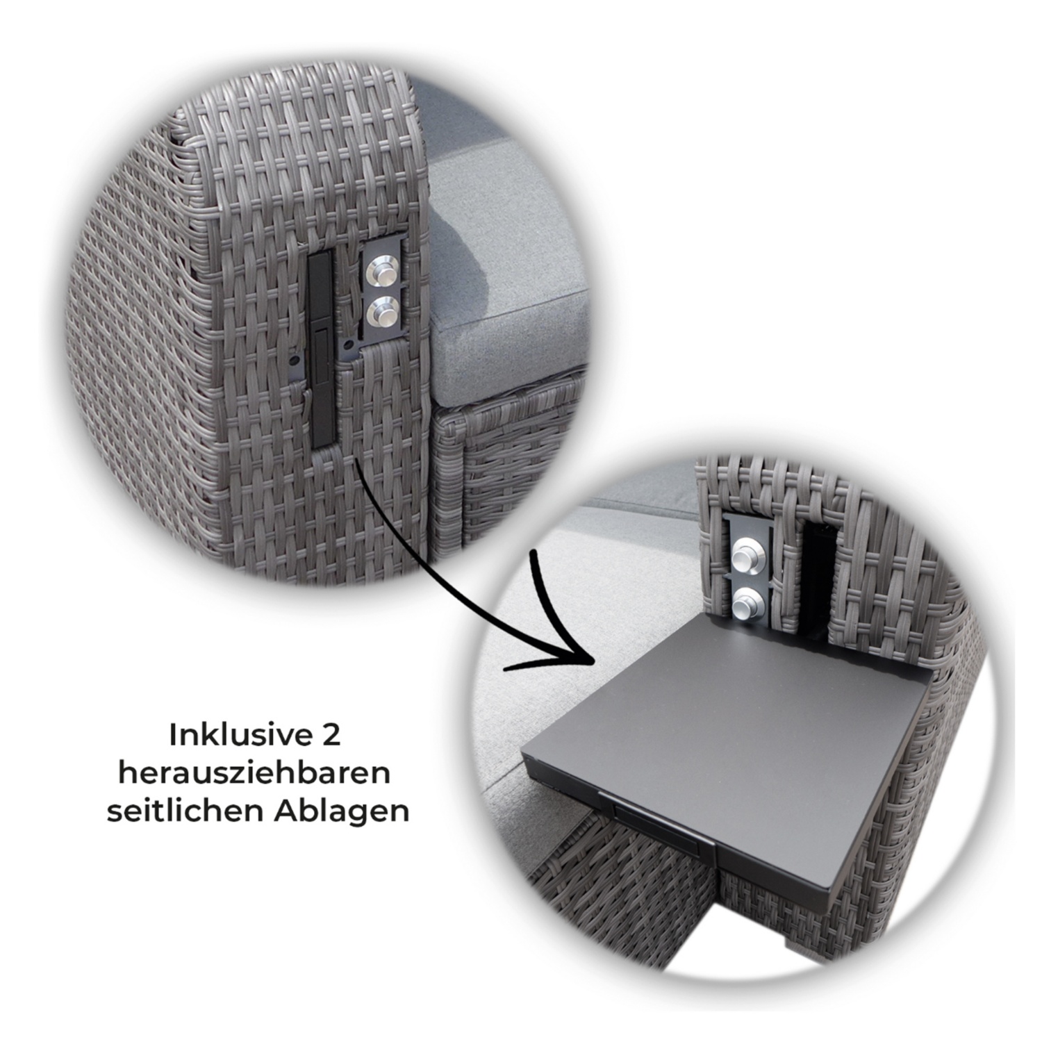 • Inklusive 2 ausziehbarer Seitenablagen