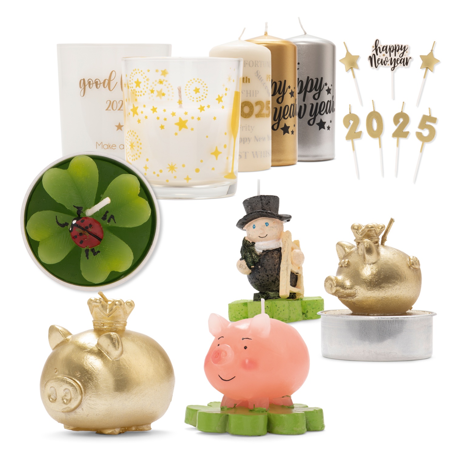 • verschiedene dekorative Kerzenvariationen für eine fröhliche Silvesterparty
