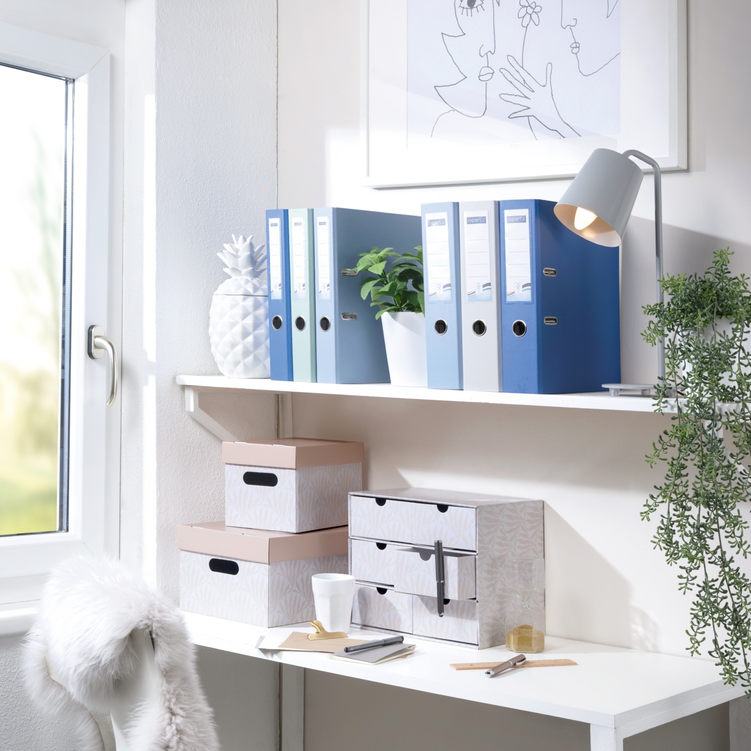 Karton-Ablagesysteme in verschiedenen Designs sorgen mit schönen Motiven für mehr Ordnung auf Schreibtischen und in Wohnräumen. Sie sind mehr als nur Aufbewahrungsboxen.
