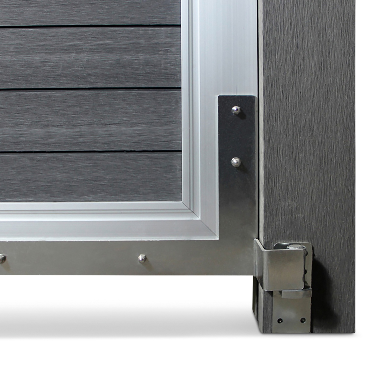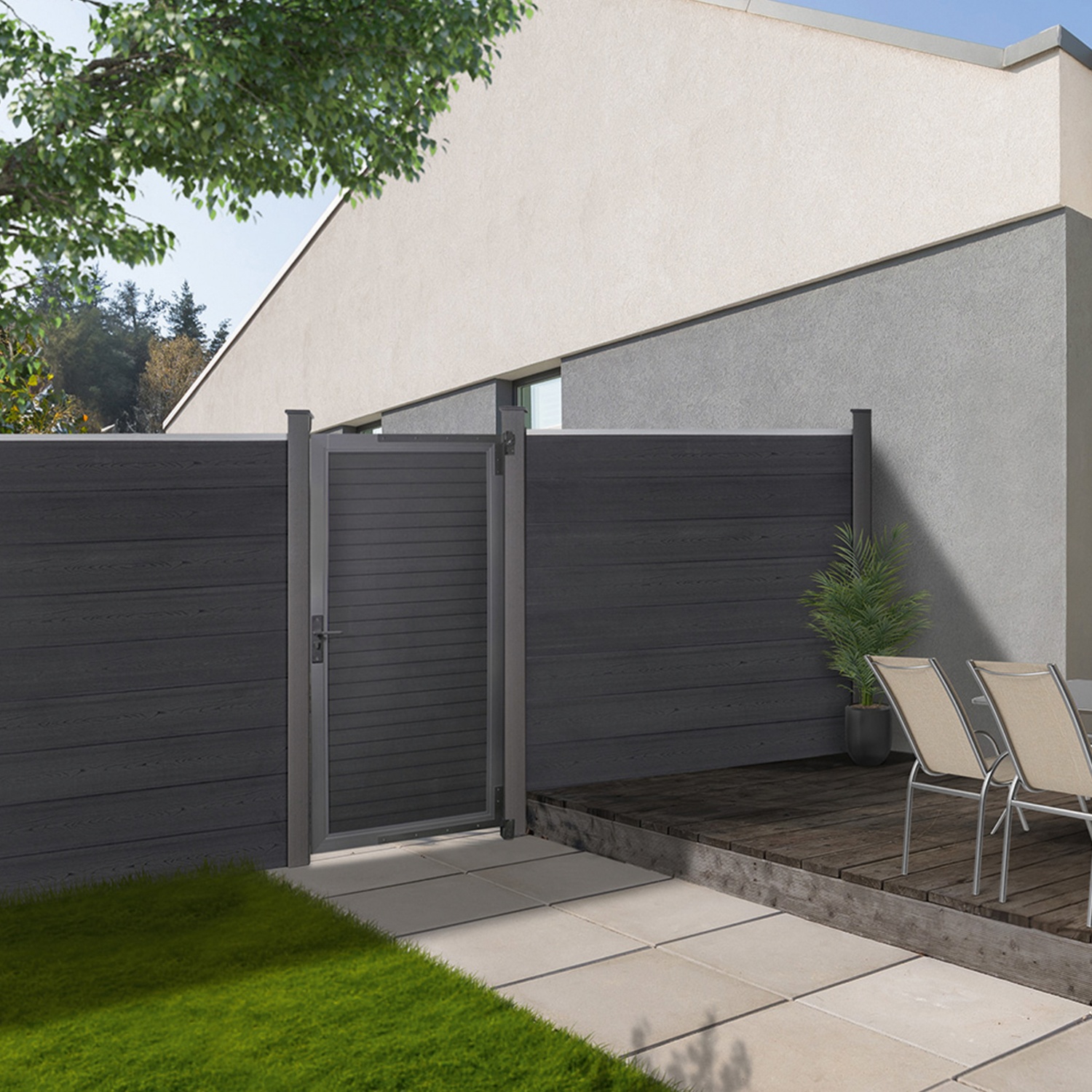 Unser Gartentor CALLATOR ist hervorragend an unseren WPC-Sichtschutzzaun CALLADO angepasst, besteht aus strapazierfähigem WPC und einem stabilen Aluminiumrahmen.