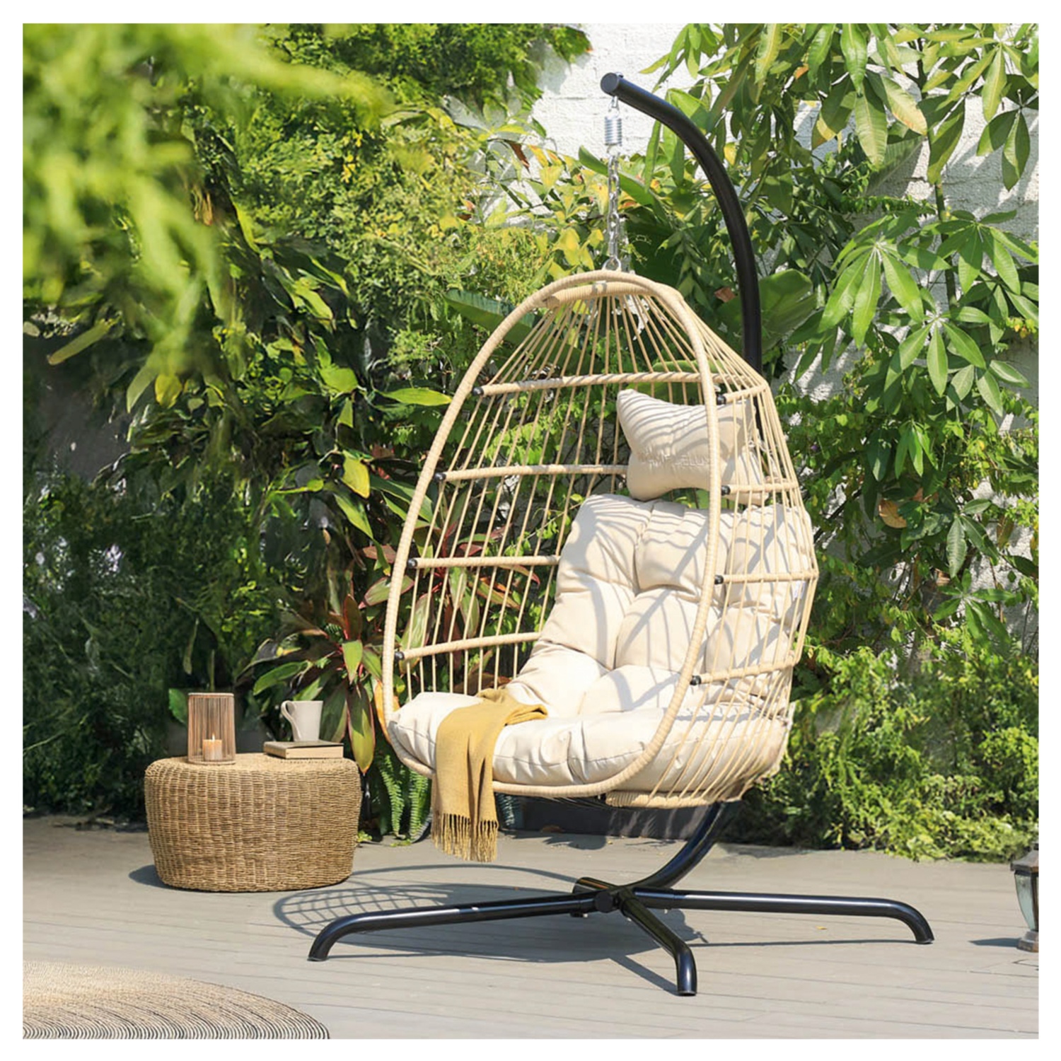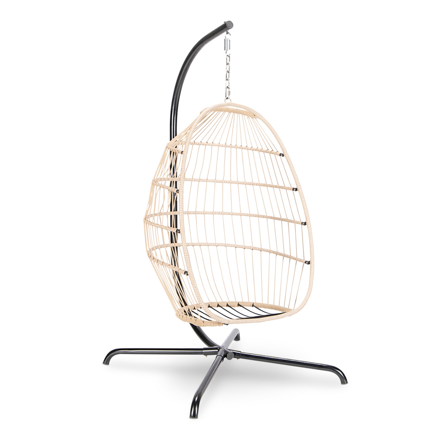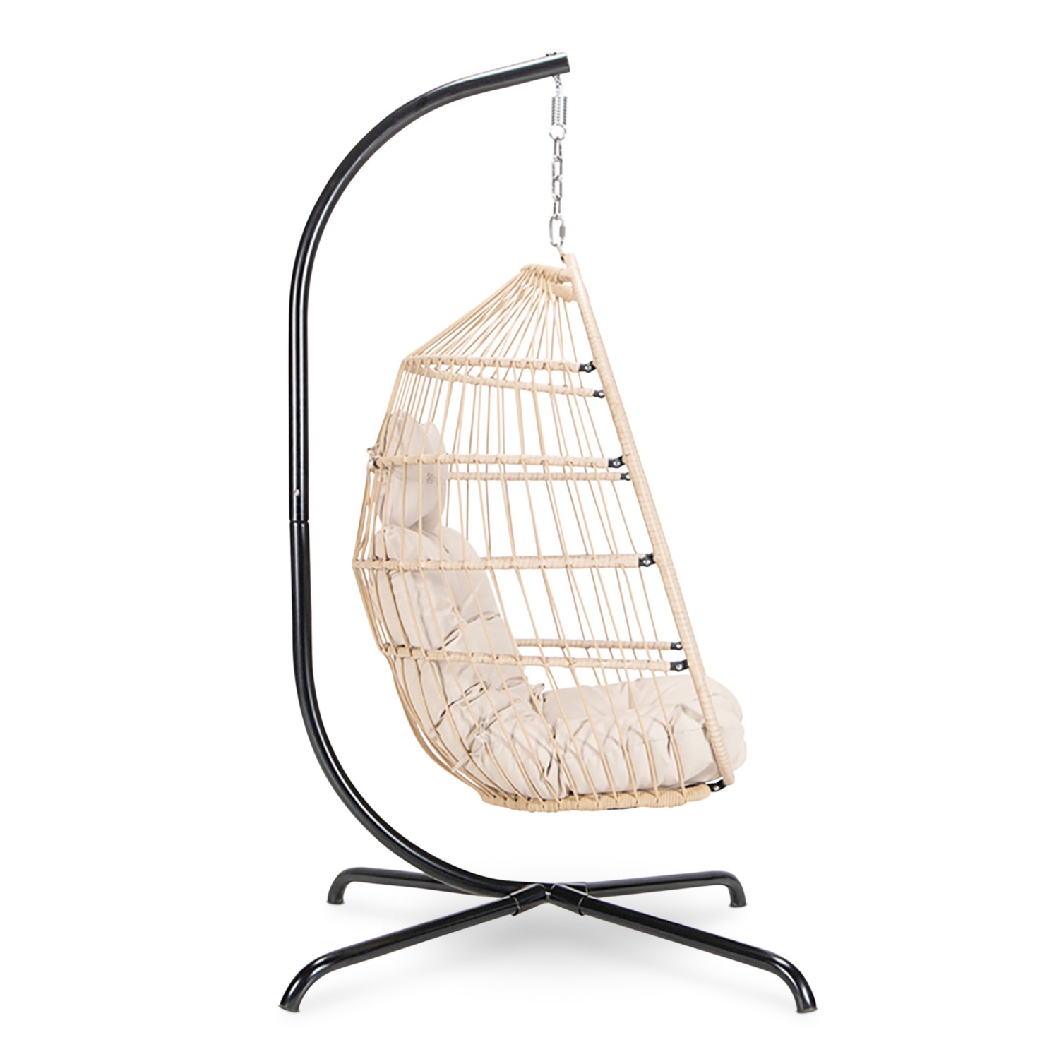 Der faltbare Hängesessel lässt sich einfach verstauen Kombination aus umwickeltem Stahl und Seilbespannung sorgt für Flexibilität, besonderen Komfort
