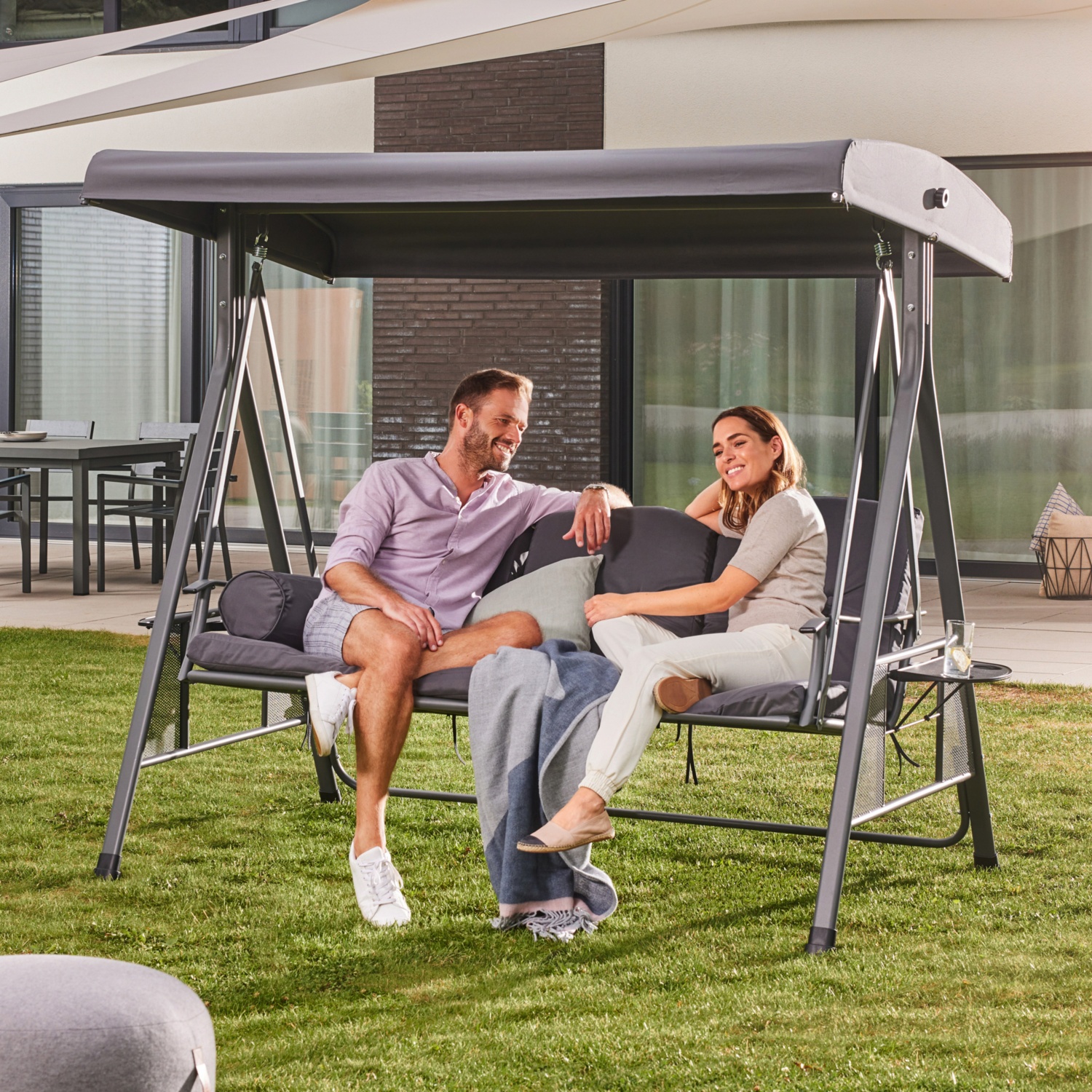Genieße entspannte Stunden im Freien auf unserer Hollywoodschaukel DESCANSO und mache deinen Garten zum gemütlichen Rückzugsort.