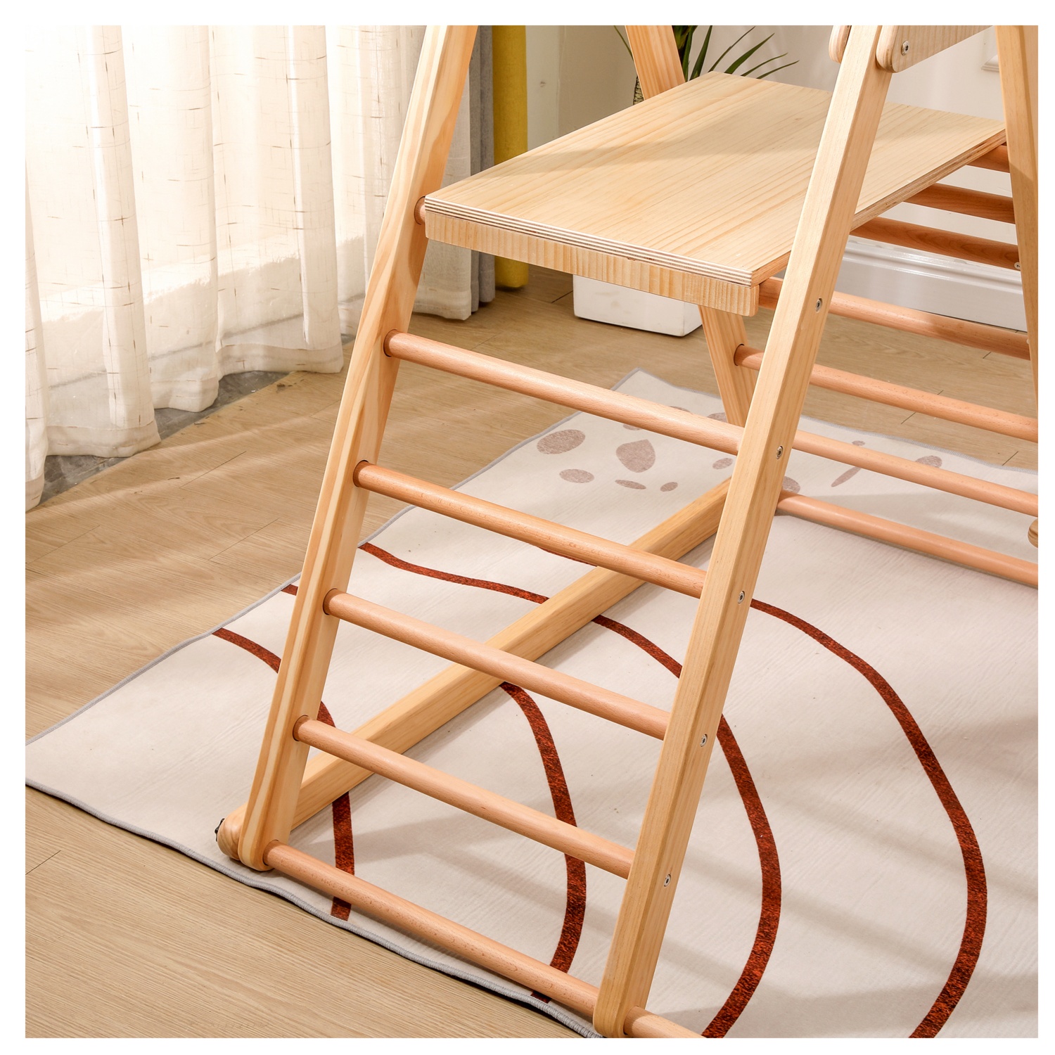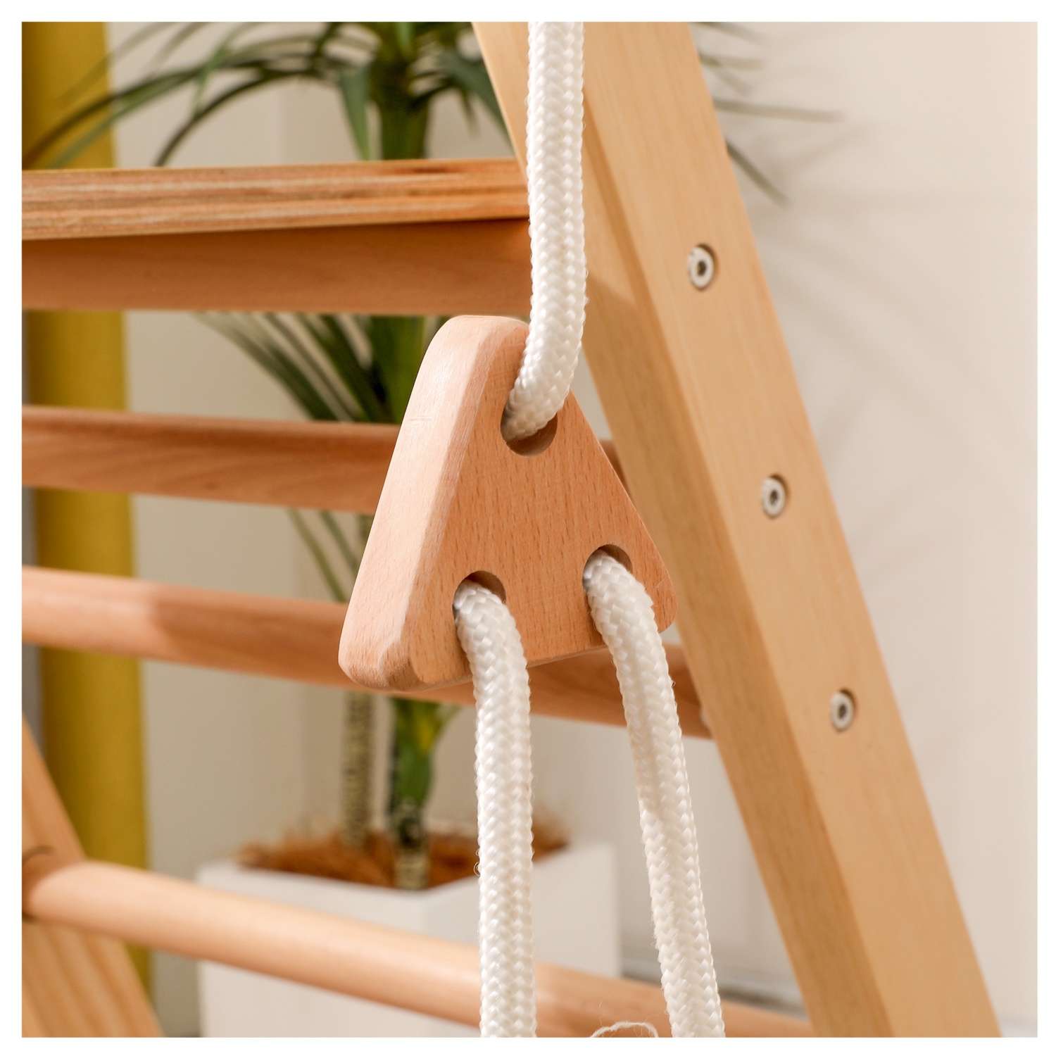 Entdecke das klappbare Indoor-Klettergerüst IDA aus hochwertigem Kiefernholz – platzsparend, robust und sicher.