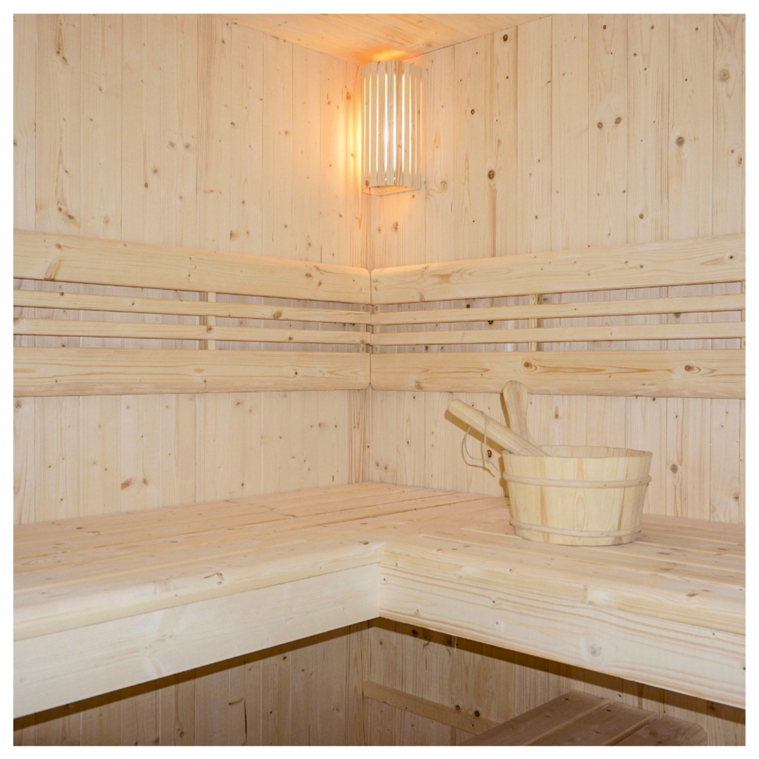 • inkl. Kelch, Kelle, Sanduhr, Thermometer, Saunasteinen und Lampe (Leuchtmittel nicht im Lieferumfang enthalten)