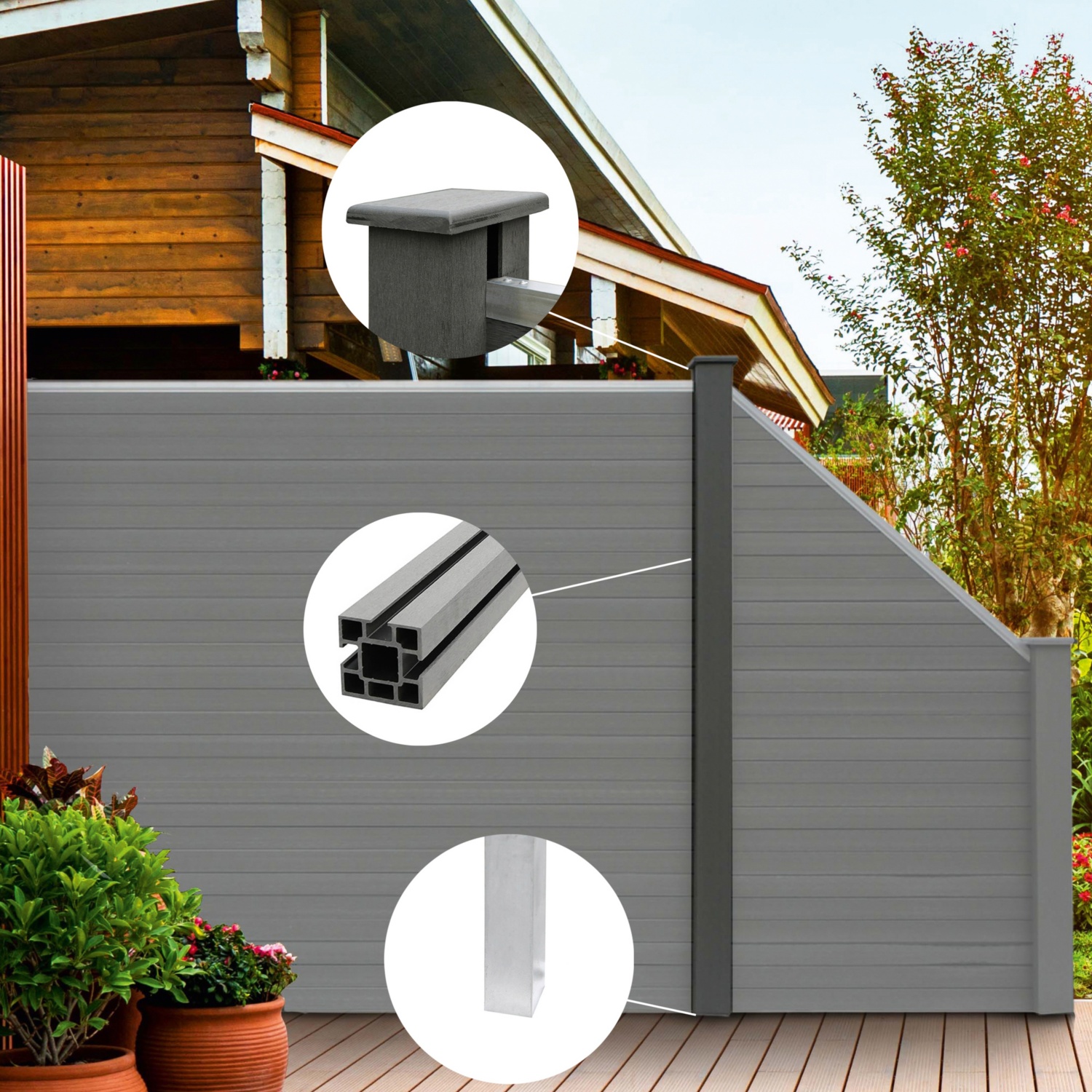 • Bitte beachten: Durch Lichteinfall und Sonnenstand können die Farben abweichen. Die hinterlegten Bilder sind Beispielbilder. Bitte beachten: Der Pfosten ist nur für den Sichtschutzzaun CALLADO geeignet!