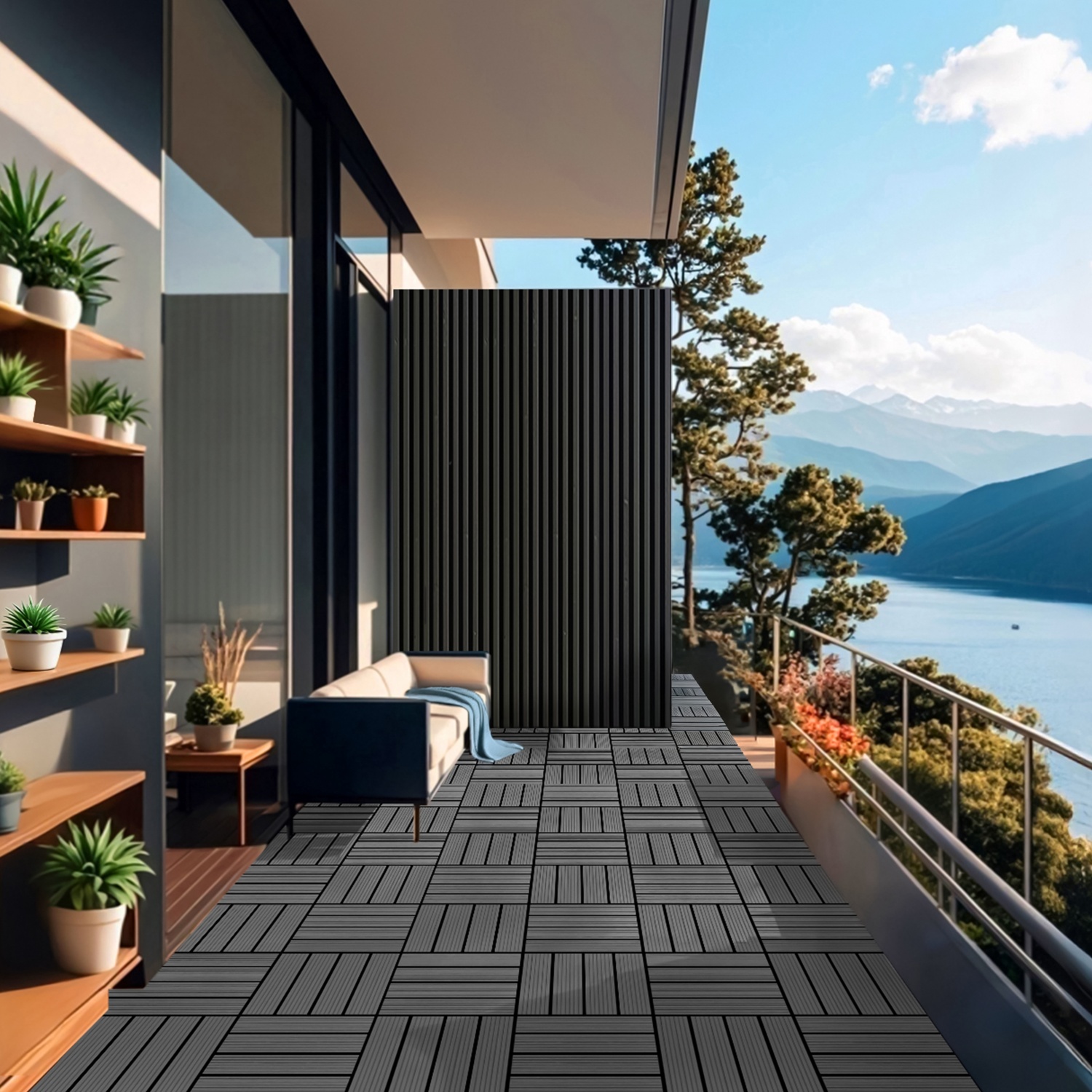 Gestalten den Boden deines Außenbereichs schnell und einfach neu. Durch die Verwendung von WPC wird deine Terrasse und/ oder Balkon sehr pflegeleicht und zugleich langlebig. Eine Nachbehandlung durch Streichen oder Ölen ist nicht notwendig. Die WPC Fliesenbestehen aus einem Gemisch von Holz und Kunststoff, das die Vorteile beider Werkstoffe ideal miteinander vereint. Die Oberfläche der Fliesen ist witterungsbeständig und splitterfrei und daher bedenkenlos barfuß begehbar. Somit eignen sich die WPC Fliesenauch hervorragend als Umrandung für Pools.