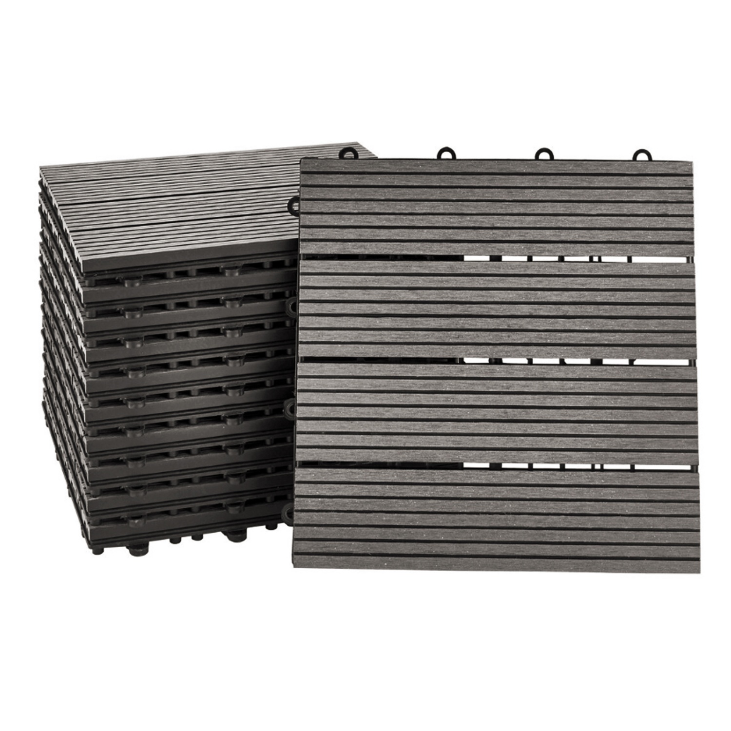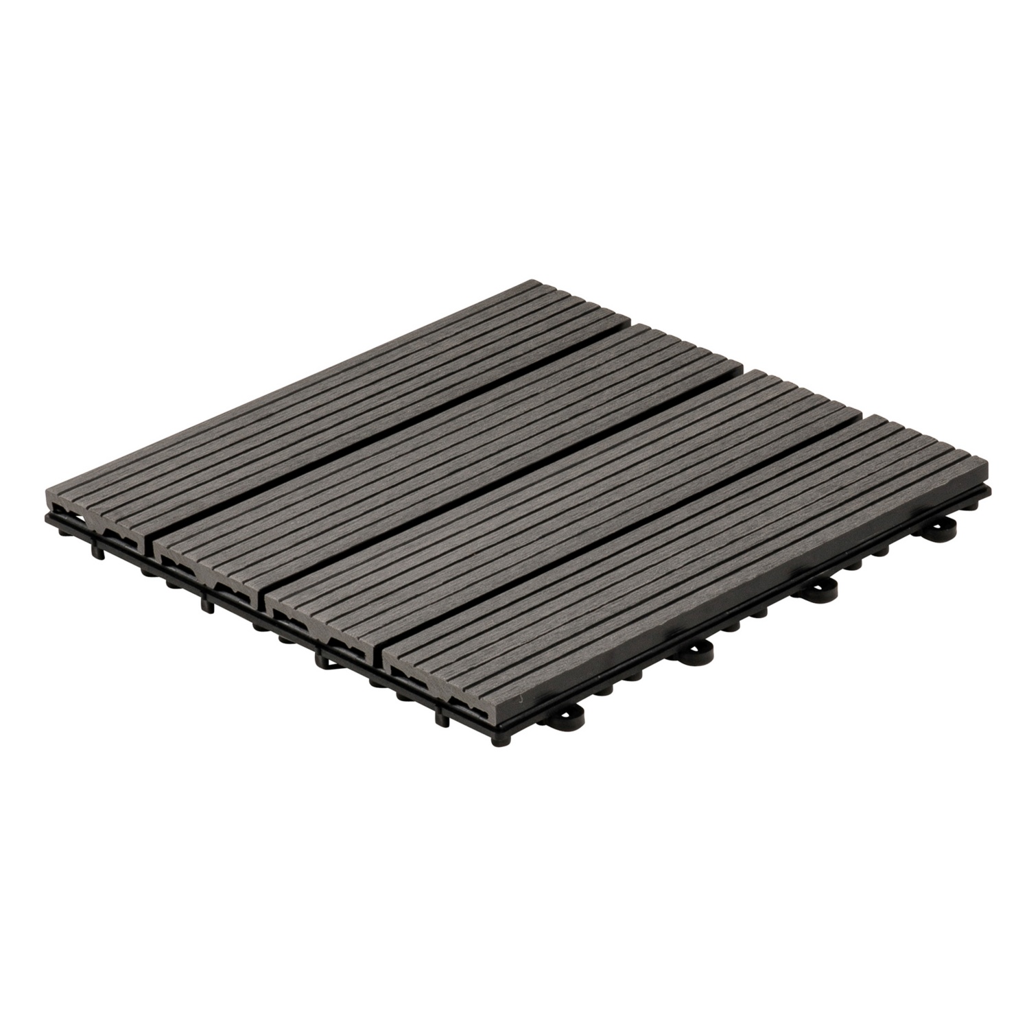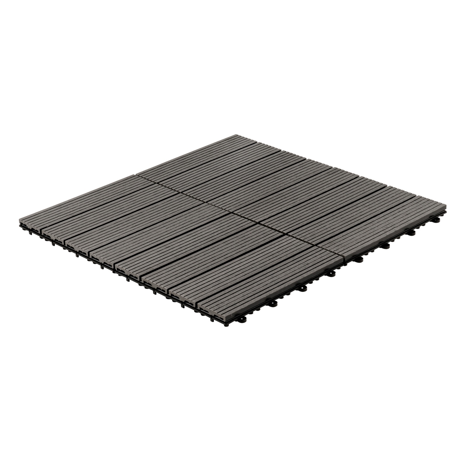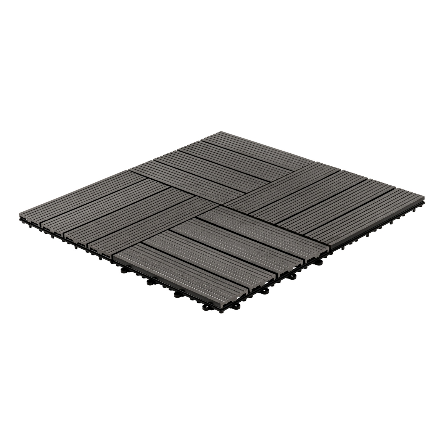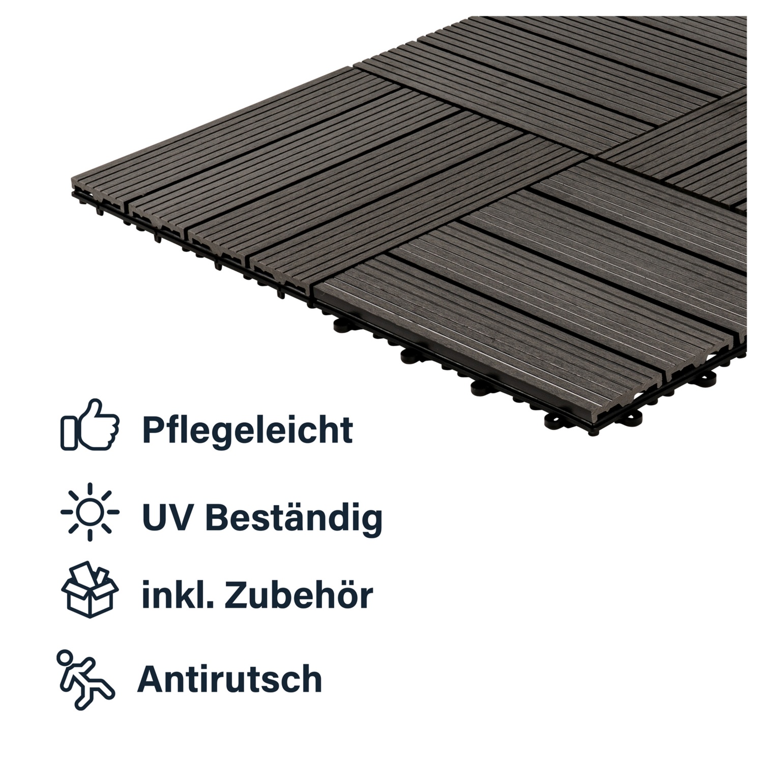 Die leichte Maserung der Oberfläche sorgt für eine überzeugende Holzoptik und machen die umweltfreundlichen Fliesen zu einem echten Highlight in Ihrem Außenbereich. Die Unterseite der Terrassenfliesen ist mit einem Drainagegitter versehen, so dass diese auch nach einem Regenguss schnell trocknen und wieder ohne Rutschgefahr begangen werden können. Das praktische Klicksystem unserer Terrassenfliesen macht das Verlegen auch auf größeren Flächen kinderleicht und schnell. Die Fliesen werden einfach ineinander verhakt, wodurch eine stabile einheitliche Fläche entsteht.