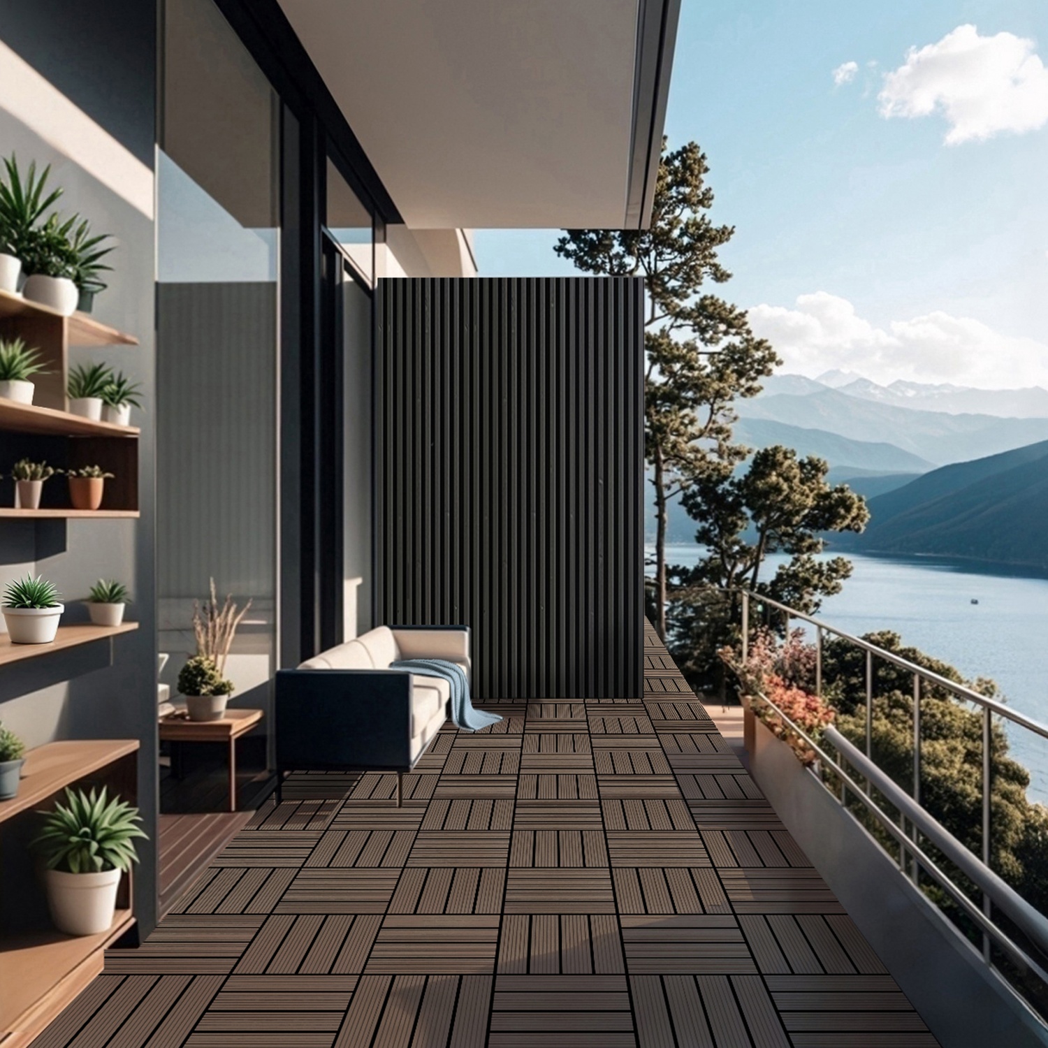 Gestalten den Boden deines Außenbereichs schnell und einfach neu. Durch die Verwendung von WPC wird deine Terrasse und/ oder Balkon sehr pflegeleicht und zugleich langlebig. Eine Nachbehandlung durch Streichen oder Ölen ist nicht notwendig. DieWPC Fliesenbestehen aus einem Gemisch von Holz und Kunststoff, das die Vorteile beider Werkstoffe ideal miteinander vereint. Die Oberfläche der Fliesen ist witterungsbeständig und splitterfrei und daher bedenkenlos barfuß begehbar. Somit eignen sich die WPC Fliesenauch hervorragend als Umrandung für Pools.
