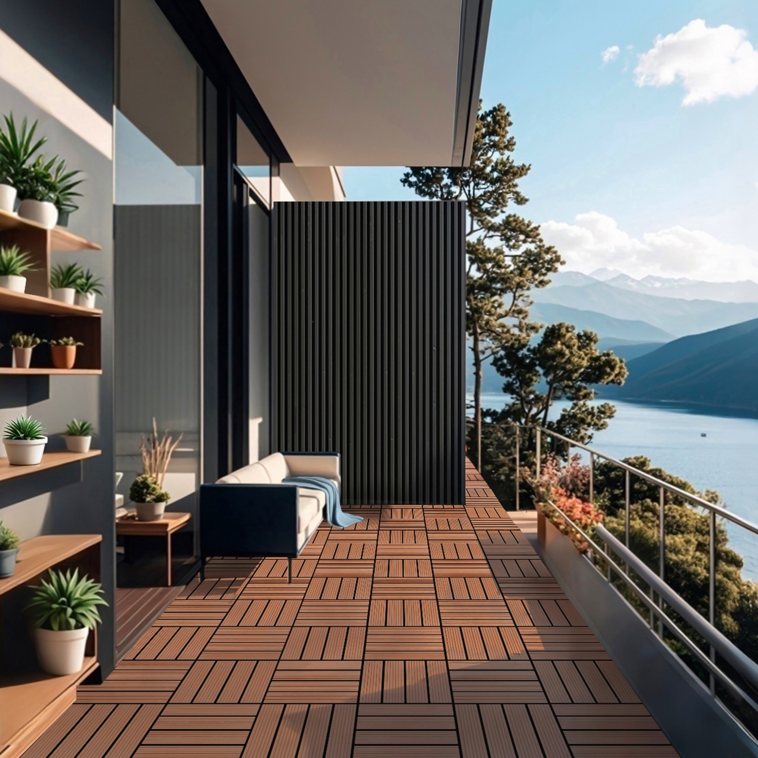 Gestalten den Boden deines Außenbereichs schnell und einfach neu. Durch die Verwendung von WPC wird deine Terrasse und/ oder Balkon sehr pflegeleicht und zugleich langlebig. Eine Nachbehandlung durch Streichen oder Ölen ist nicht notwendig. Die WPC Fliesenbestehen aus einem Gemisch von Holz und Kunststoff, das die Vorteile beider Werkstoffe ideal miteinander vereint. Die Oberfläche der Fliesen ist witterungsbeständig und splitterfrei und daher bedenkenlos barfuß begehbar. Somit eignen sich die WPC Fliesenauch hervorragend als Umrandung für Pools.