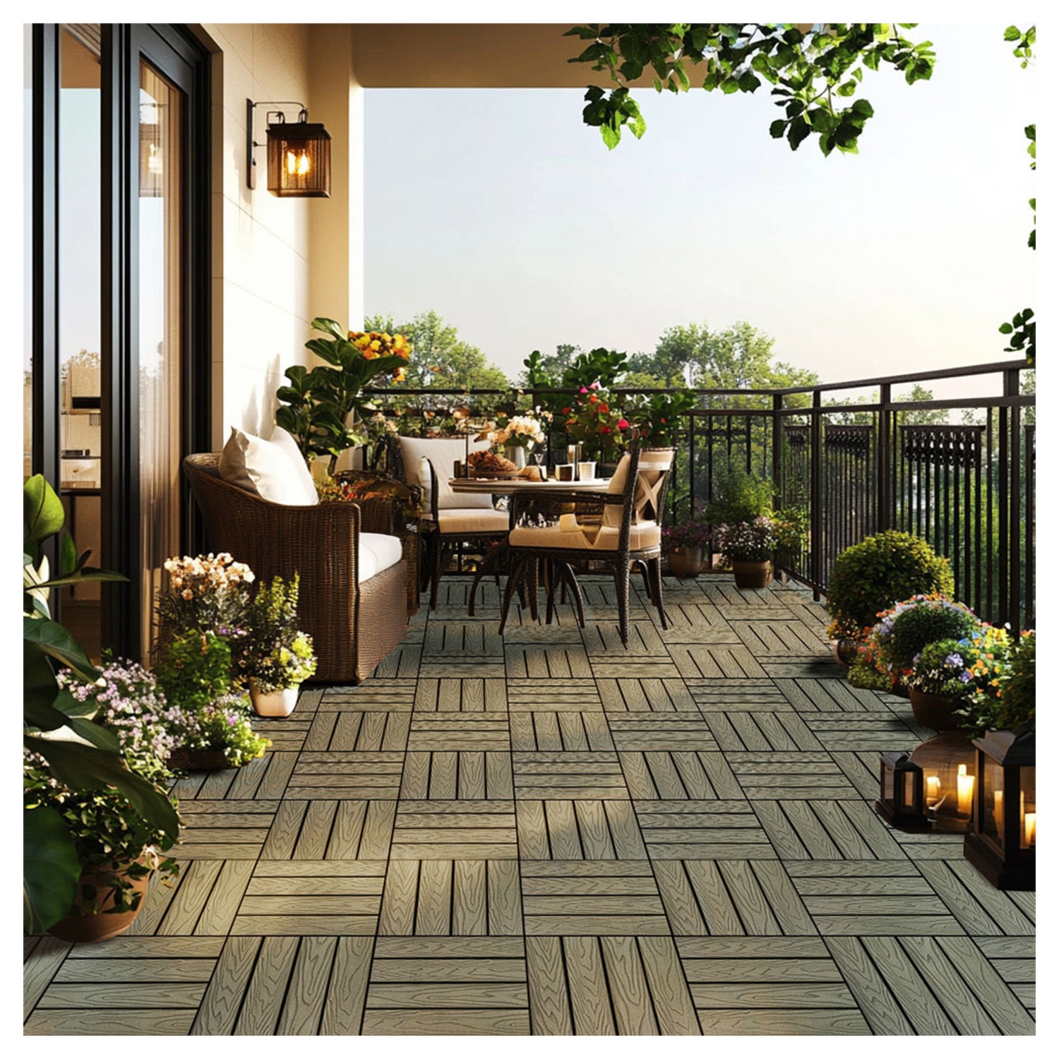 Verwandle deine Terrasse, deinen Balkon oder deinen Garten in einen echten Hingucker mit unseren WPC Klickfliesen BAVARO PREMIUM.