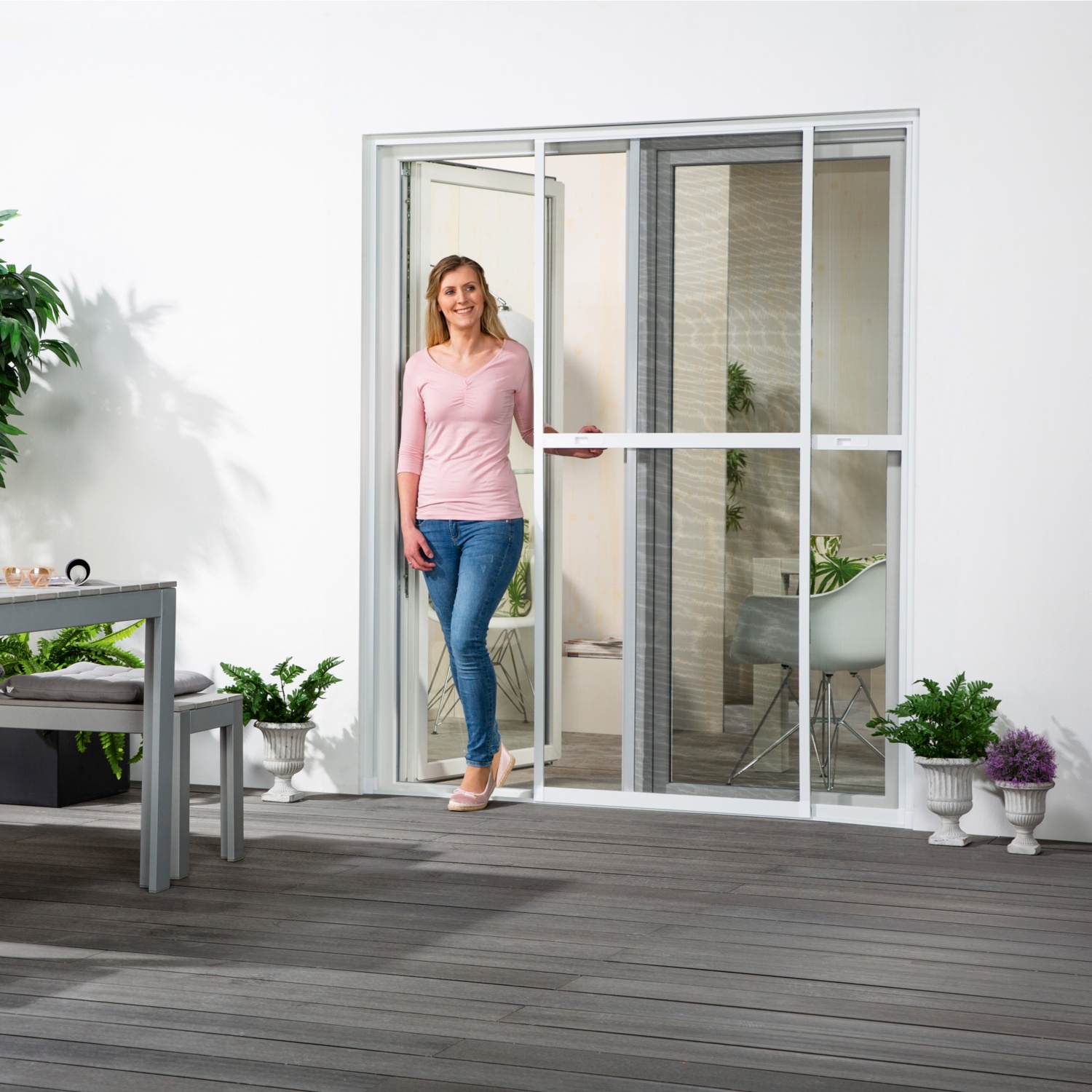 Insektenschutz - Doppelschiebetür weiß
