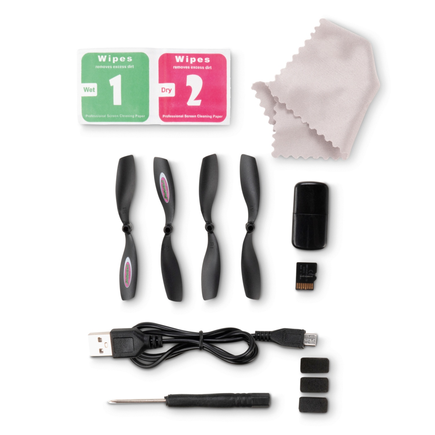 • 120° Weitwinkel WiFi FPV HD Kamera 720p mit Photo-/Videofunktion und wechselbarer 4 GB Micro SD-Karte
