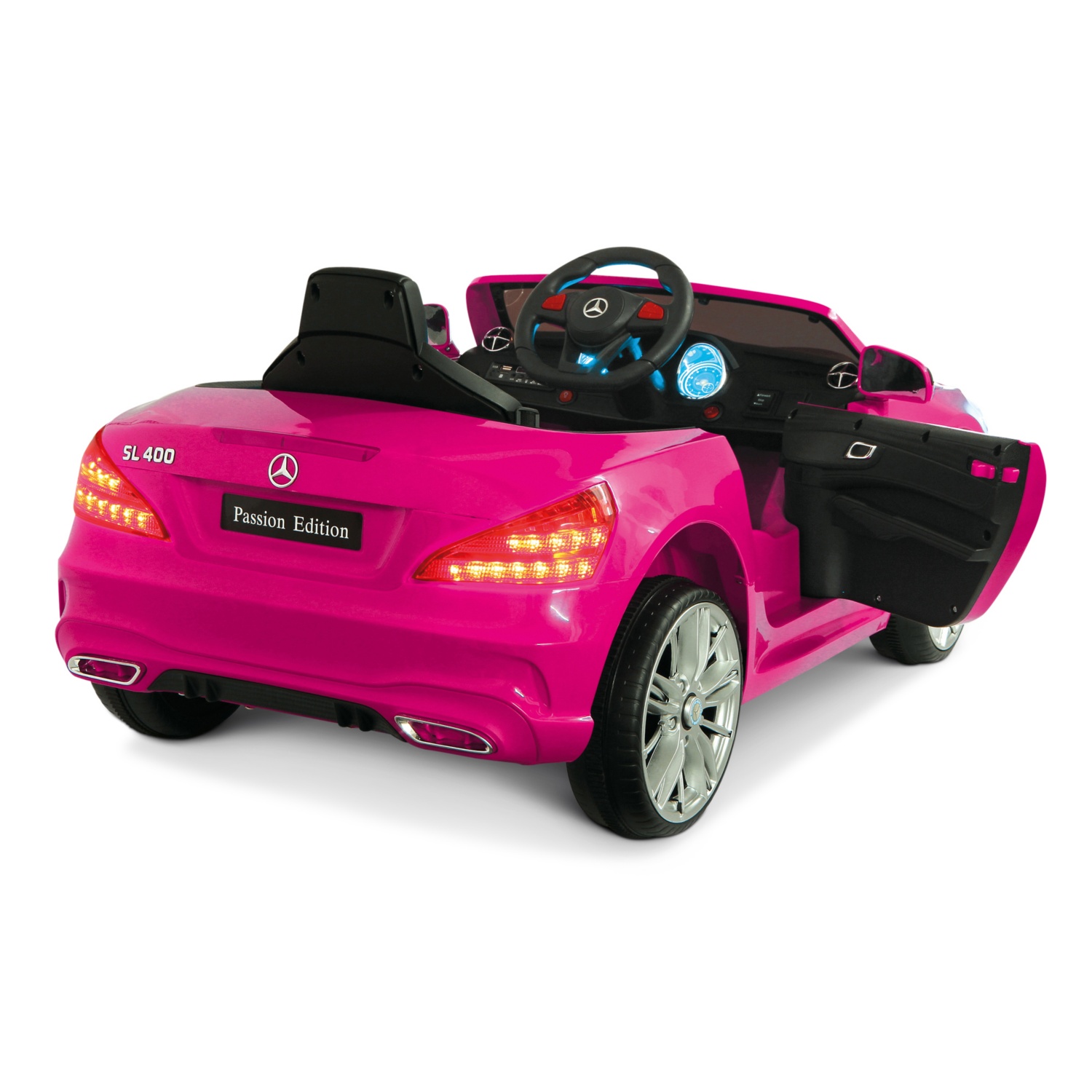 Wer hat nicht schon mal davon geträumt, einmal mit einem echten Mercedes zu fahren. Jetzt kann dieser Traum wahr werden – mit Mercedes-Benz SL 400 Ride-On von Jamara. Einfach an der Steckdose auftanken, einsteigen, Gas geben und loscruisen. Das wird Ihre Kleinen begeistern. Mit echten Türen, LED-Licht, Hupe und realistischen Soundeffekten mit USB- und AUX-Anschluss – ist alles verbaut was zum realistischen Spiel dazu gehört. Ein leistungsstarker Motor treibt die Räder des Fahrzeuges an – und mit über einer Stunde Fahrzeit mit nur einer „Tankfüllung“, ist echter Spielspaß garantiert. In vier Farben im Vertreib von JAMARA.