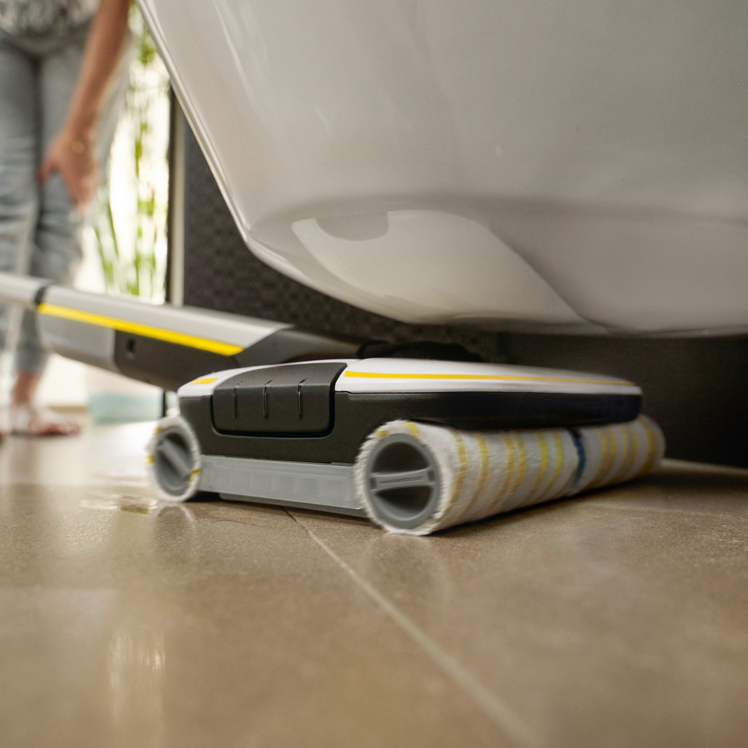 Kein Staubsaugen vor dem Wischen mehr! Dank zwei gegenläufig rotierender Duo!Move Walzenpaare und Hygienic!Spin+ Funktion beseitigt unser Akku-Hartbodenreiniger FC 7 Cordless bis zu 99,9 % aller Bakterien*** und entfernt zudem trockenen und feuchten Alltagsschmutz mühelos und schnell von allen Hartböden – dank zuschaltbarer Boost-Funktion auch in sehr hartnäckigen Fällen und immer sauber bis an den Rand. Selbst Haare werden dank der Haarfilter aufgenommen. Dabei sind bis zu 50 Prozent Zeiteinsparung** im Vergleich zur herkömmlichen Methode und gut 20 Prozent bessere Reinigungsergebnisse gegenüber einem normalen Wischmopp* möglich. Dank des entstehenden Hover-Effekts schwebt das Gerät förmlich über den Boden, sodass Sie weniger Kraft aufwenden müssen. Bis zu 175 m² Fläche unempfindlicher Hartböden und Fugen schafft der leistungsstarke Akku bei 45 Minuten Laufzeit. Das 180° Pass!Under Design sorgt für perfekte Unterfahrbarkeit von Möbeln. Wassermenge sowie Rotationsgeschwindigkeit der automatisch befeuchteten Walzen sind passend zum Boden in zwei Reinigungslevel einstellbar.