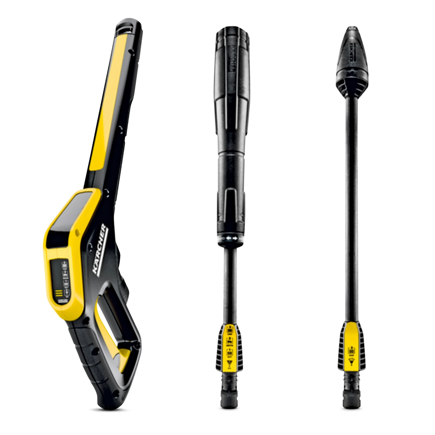 • Power Control-Pistole mit Quick Connect und Strahlrohre, die optimale Einstellung für jede Oberfläche, 3 Druck- und eine Reinigungsmittelstufe