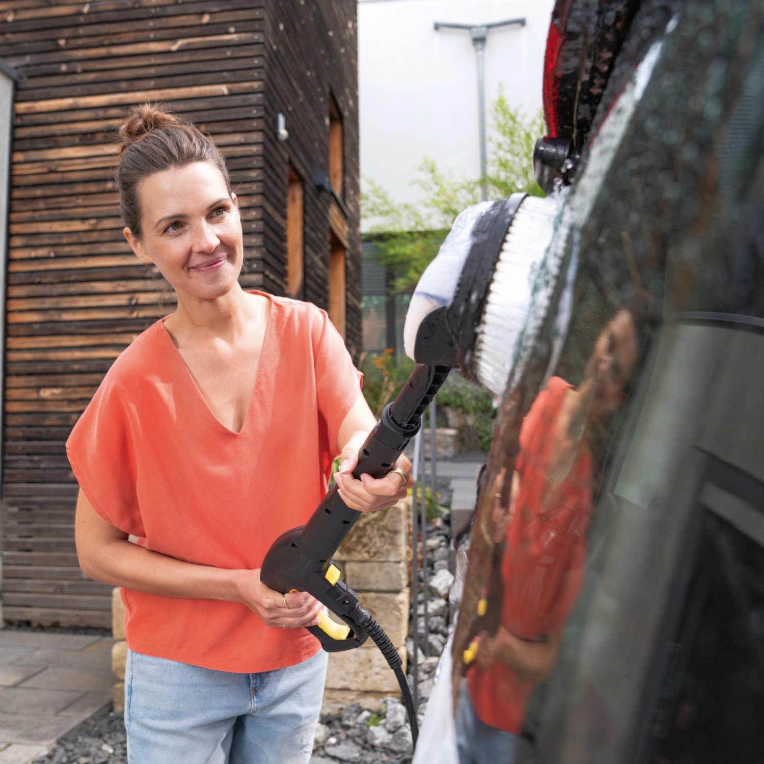 Der Hochdruckreiniger K 4 Power Control Flex Car & Home macht es einem mehr als einfach, jede Oberfläche mit passendem Druck zu reinigen. Und dank der Kärcher Home & Garden App fällt auch das Finden des passenden Drucks ganz leicht: Der in der App integrierte Anwendungsberater unterstützt den Nutzer mit praktischen Tipps zu jeder Reinigungssituation und jedem Reinigungsobjekt – für perfekte Reinigungsergebnisse. Für maximale Kontrolle kann die Druckstufe ganz einfach durch Drehen am Strahlrohr eingestellt und an der G 160 Q Power Control-Pistole überprüft werden. Weiter überzeugt der K 4 Power Control Flex mit dem Kärcher Plug ’n’ Clean-Reinigungsmittelsystem für mühelosen Reinigungsmittelwechsel, dem PremiumFlex-Hochdruckschlauch für die komfortable Anwendung, einem Teleskopgriff für den bequemen Transport, dem Quick Connect-System für ein müheloses und zeitsparendes Ein- und Ausklicken des Hochdruckschlauchs in das Gerät und die Pistole sowie einer Parkposition für jederzeit griffbereites Zubehör. Das Car & Home Kit enthält den Flächenreiniger T 5, 1 Liter Stein- und Fassadenreiniger, eine Schaumdüse, eine rotierende Waschbürste sowie 1 Liter Car Shampoo.