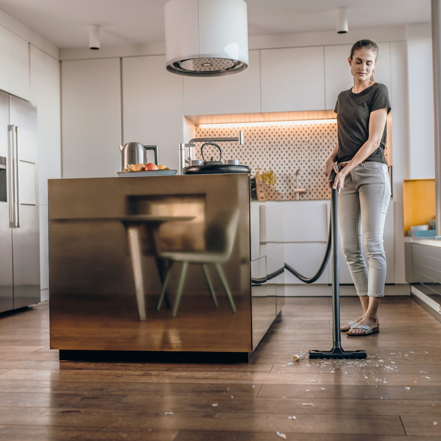 Für die Aufgaben, die für Ihren alltäglichen Staubsauger im Haus zu schwer sind, gibt es den leistungsstarken Kärcher KWD 2 S Nass- und Trockensauger. Dieses robuste Gerät nimmt es mit dem hartnäckigsten Schmutz rund um Ihr Auto, Ihre Garage und Ihren Garten auf und wechselt mühelos zwischen Nass- und Trockensaugung für alles von Staub bis zu schwerem Schutt. Der leistungsstarke 1000-Watt-Motor des KWD 2 S liefert eine extreme Saugkraft, die selbst bei den schwierigsten Reinigungsaufgaben im Freien ein perfektes Ergebnis erzielt. Ob Staub, Glas oder Flüssigkeiten - dank des intelligenten Patronenfiltersystems können Sie nahtlos von einer Schmutzart zur anderen wechseln und so Zeit sparen. Die kompakte Größe dieses Geräts spart Platz in der Garage, und dank der integrierten Ablage für alle Teile haben Sie alles, was Sie brauchen, während der Arbeit immer griffbereit. Der KWD 2 S wird mit einem stoßfesten 15-Liter-Behälter aus Edelstahl, einem 1,8 m langen Saugschlauch, zwei Saugrohren, einer Filterpatrone und einem Werkzeug für nasse bis trockene Böden geliefert.