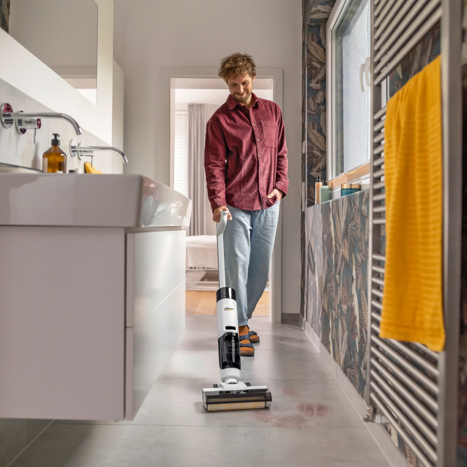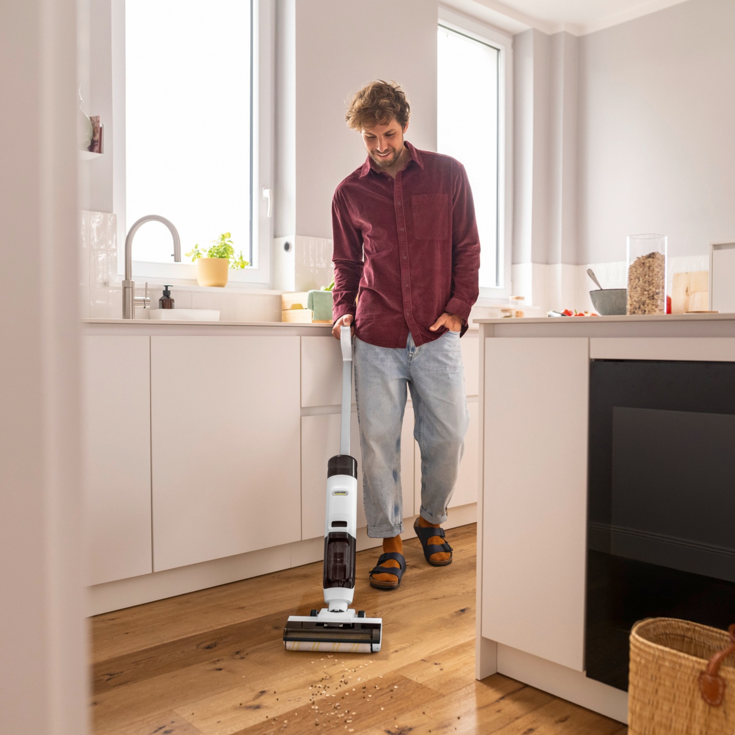 Genießen Sie die mühelose Reinigung mit dem kompakten Saugwischer KFL 1! Der 3-in-1-Saugwischer mit innovativer Xtra!Clean Funktion saugt, wischt und trocknet, meistert mühelos Hartböden, Teppiche und sogar Flüssigkeiten und spart so bis zu 50 Prozent Zeit*. Wählen Sie aus 2 Reinigungsmodi – Standardmodus mit Wasserausbringung und Trockenmodus – und besiegen Sie jeden Schmutz, egal ob Staub, Tierhaare oder hartnäckige Flecken. Die ultimative Hygienic!Spin Technologie mit bis zu 500 Walzenumdrehungen pro Minute sorgt nicht nur für ein perfektes Wischergebnis, sondern beseitigt auch bis zu 99 Prozent der Bakterien** und sorgt so für hygienische Sauberkeit. Zudem bieten der ausdauernde Akku mit bis zu 25 Minuten Laufzeit für die Reinigung von bis zu 110 Quadratmetern ohne Arbeitsunterbrechung sowie die integrierte Selbstreinigungsfunktion maximalen Komfort – für eine einfache Reinigung ganz ohne Schmutzkontakt.