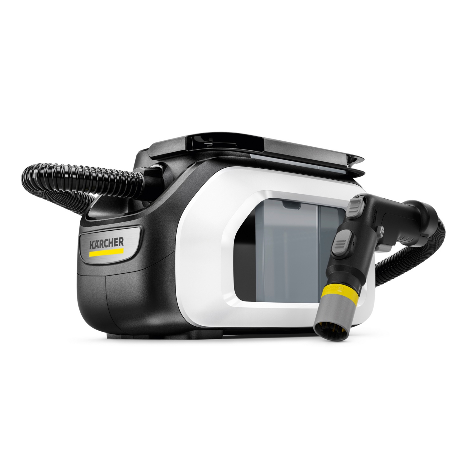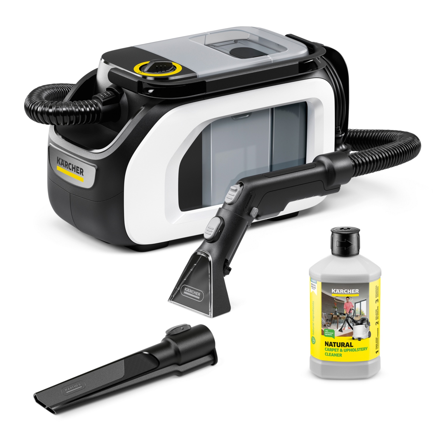• Lieferumfang: Saugschlauch1,9 m, Waschpolsterdüse: 88 mm, Waschfugendüse, Reinigungsmittel: Teppich- und Polsterreiniger, 2-in-1-Komfort-System: integrierter Sprüh-Ex-Schlauch