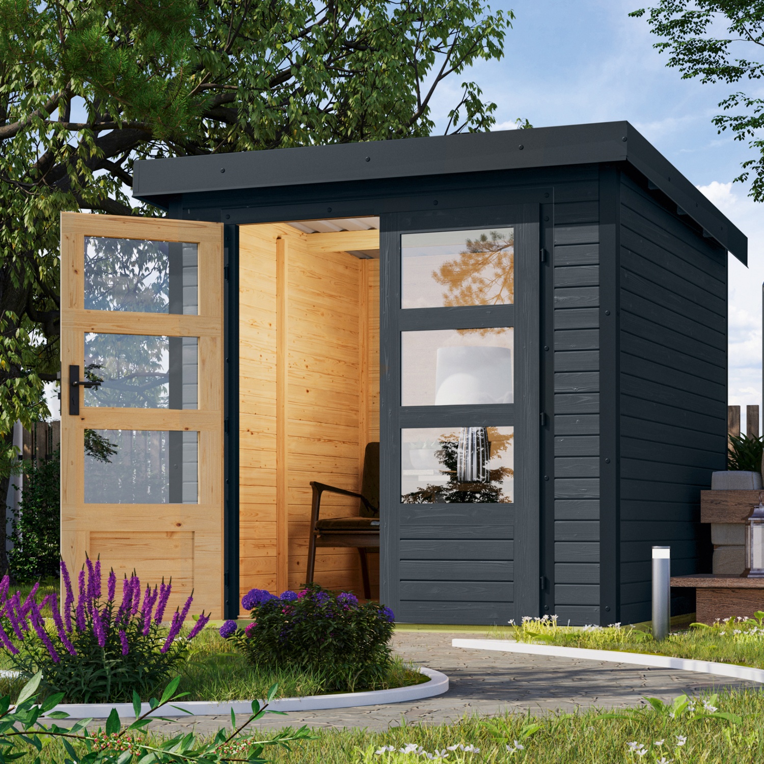 KARIBU Gartenhaus 19mm Hybrid Modern Anthrazit