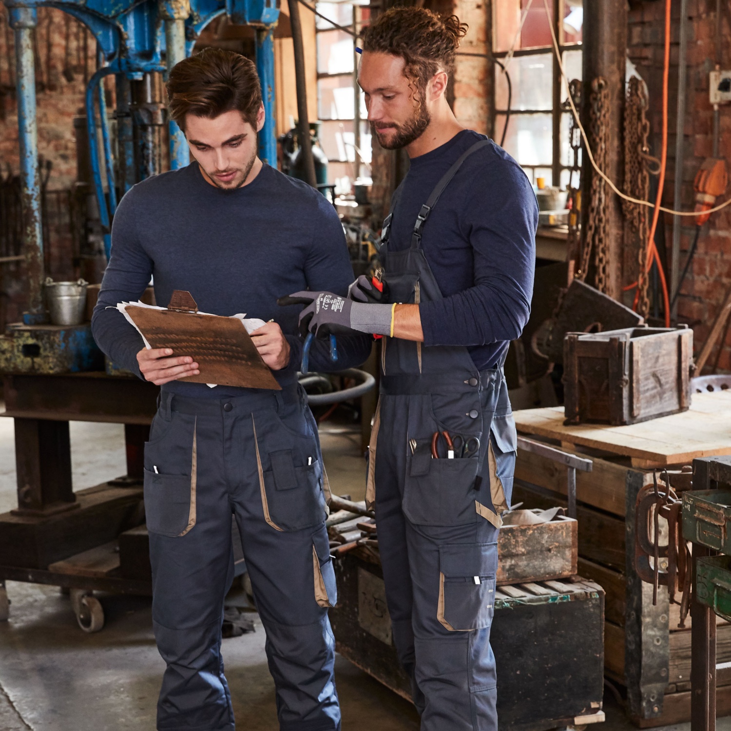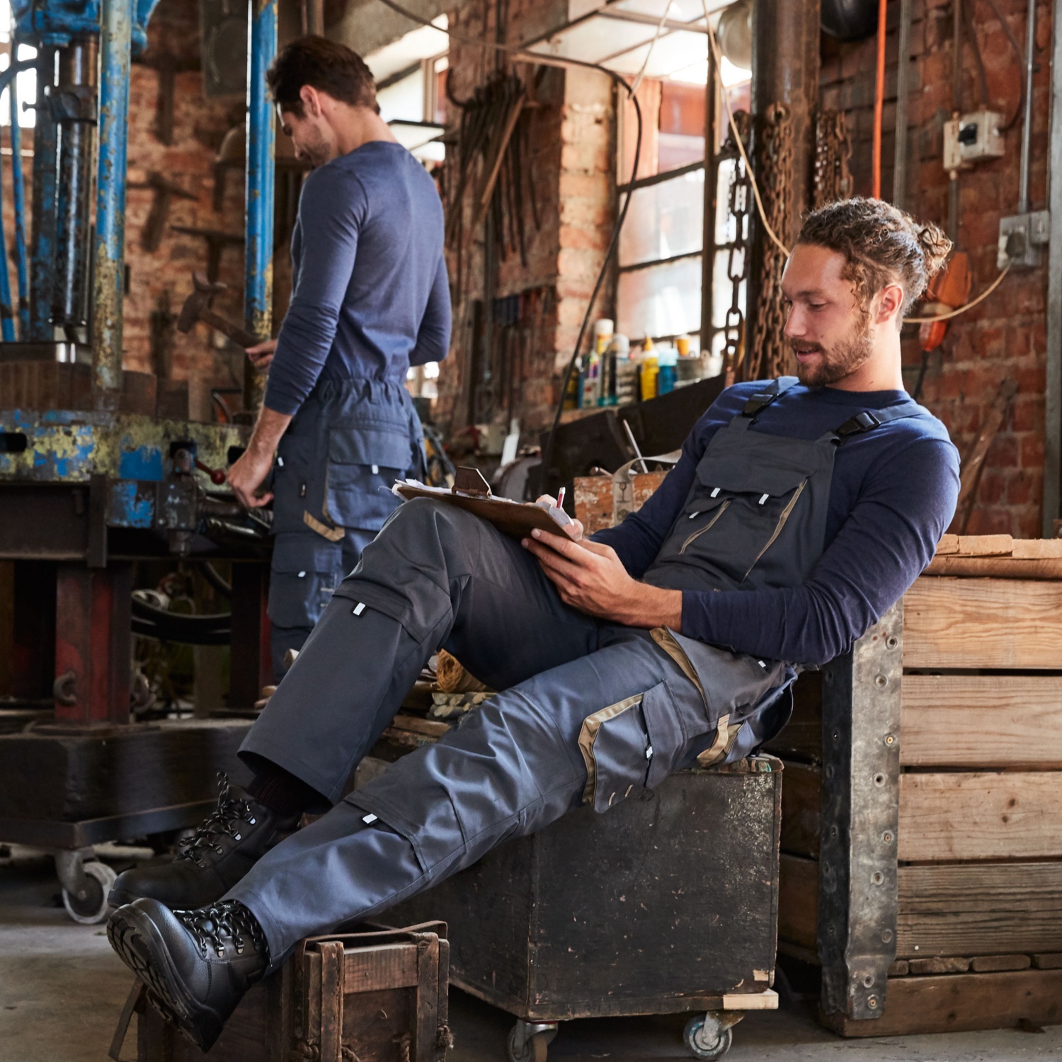 bequemes Anziehen durch 2 Seitenschlitze und Gummizug im Rückenbereich, mit verschiedenen Taschenlösungen und reflektierenden Details, Kniepartie und Zollstocktasche aus Cordura®, Gr. 48 - 56