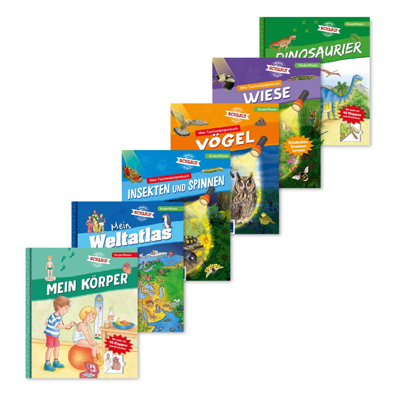 Sachbücher mit mehr als 40 Klappen zum Vorlesen und Selbstentdecken und Taschenlampenbücher zu mit stabiler Papp-Taschenlampe, die Folienseiten zum Leuchten bringt; ab 4 Jahren