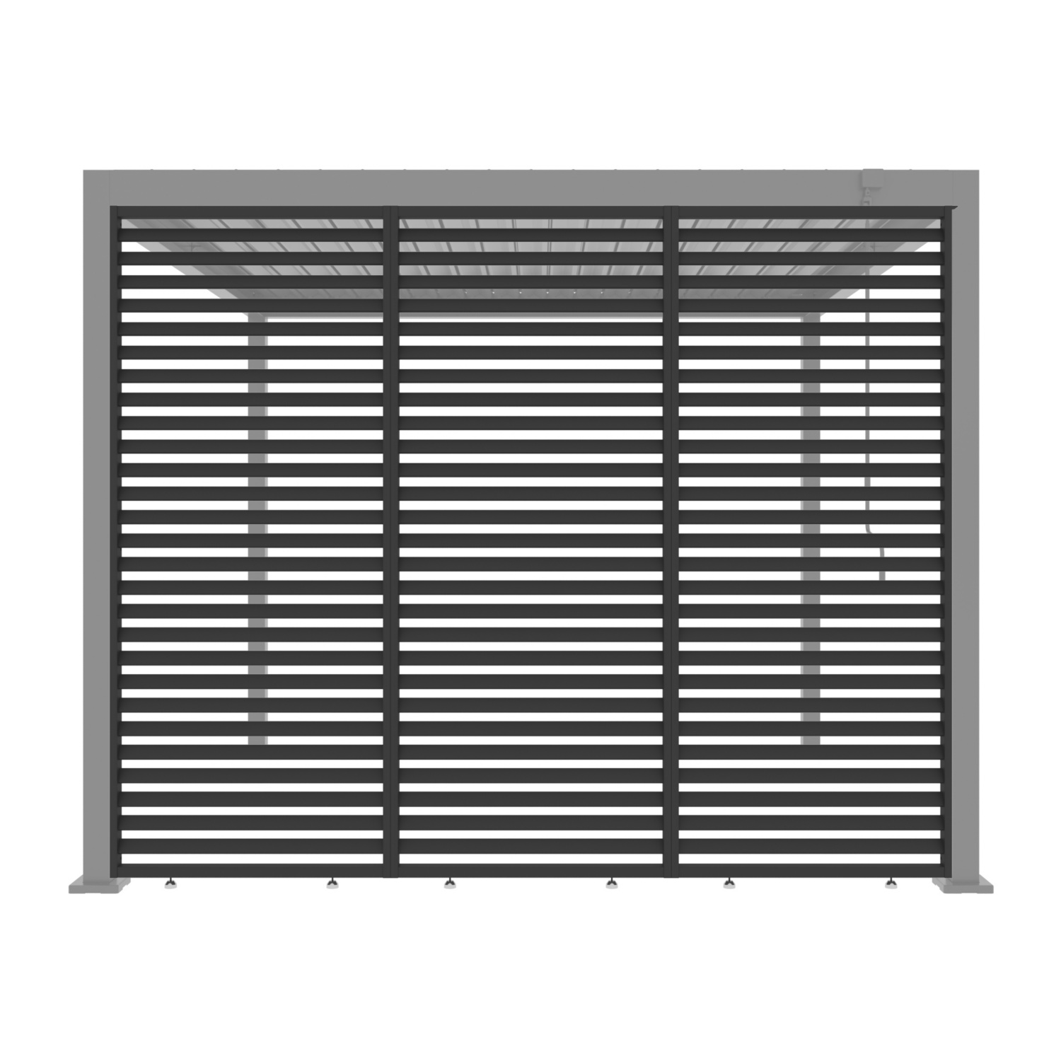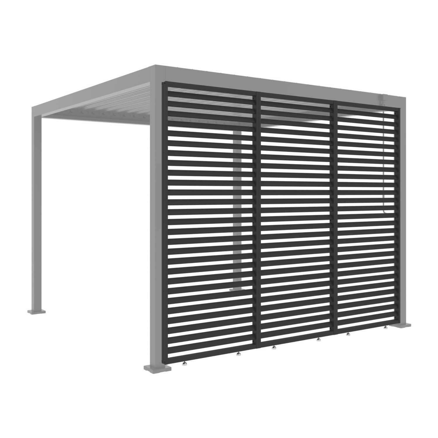 Mehr Privatsphäre & Stil: Feste Lamellenwand, die unter Ihrer Pergola eine geschützte, gemütliche Atmosphäre schafft.