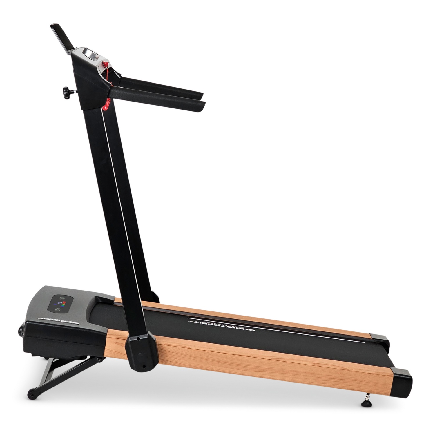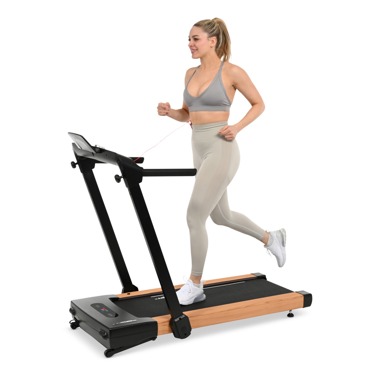 • Handlauf heruntergeklappt = Walking Pad, Handlauf hochgeklappt = vollwertiges Laufband