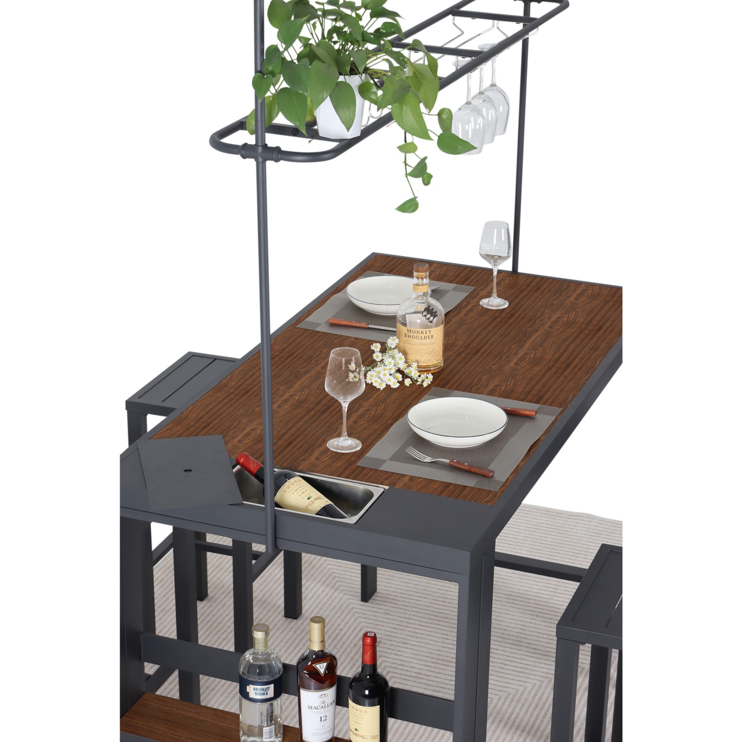 • inkl. Halterung für Gläser, seitlichen Ablageflächen und herausnehmbarer Edelstahlschale für Eiswürfel oder Snacks