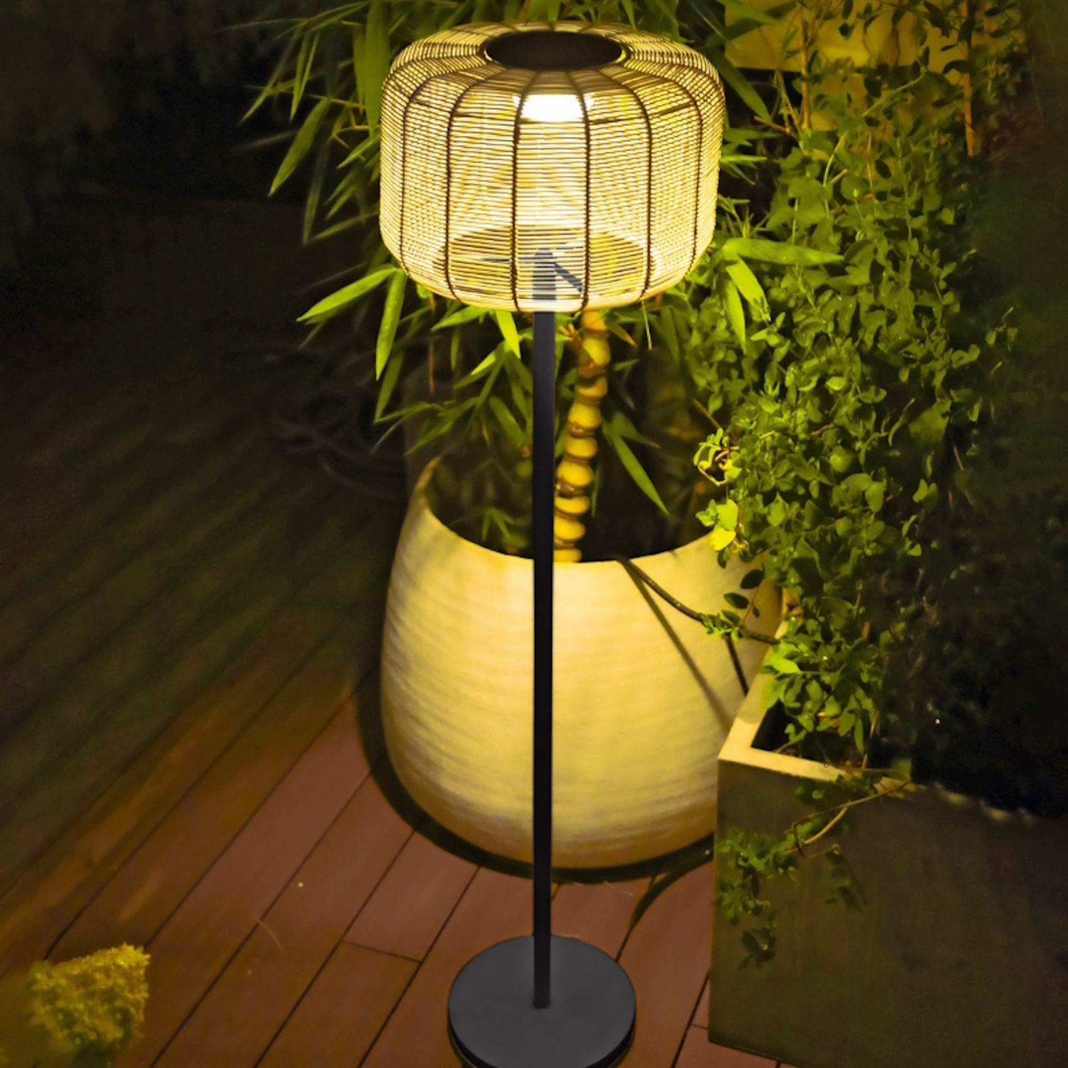Diese ausgefallene Stehlampe kann mit Solar oder Strom aufgeladen werden und ist ein Highlight in jedem Innen- und Außenbereich.