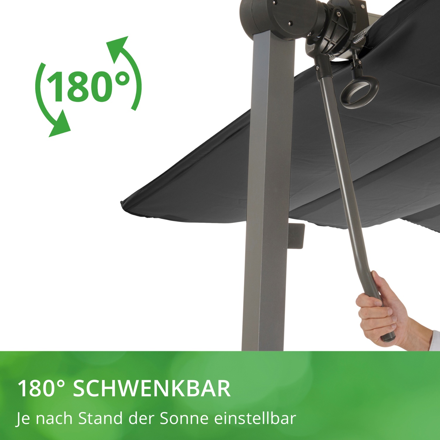 • Das standfeste Gestell aus Aluminium und Stahlrohr steht sicher in Ihrem Garten und bietet Ihnen im Handumdrehen ein komfortables Sonnensegel über dem Kopf