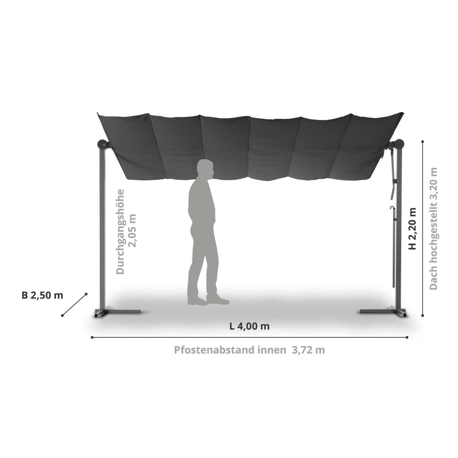 • Maße (L/B/H): ca. 400 x 250 x 220 cm