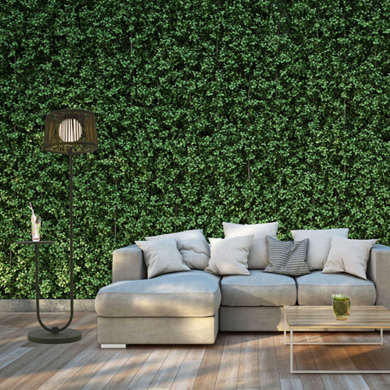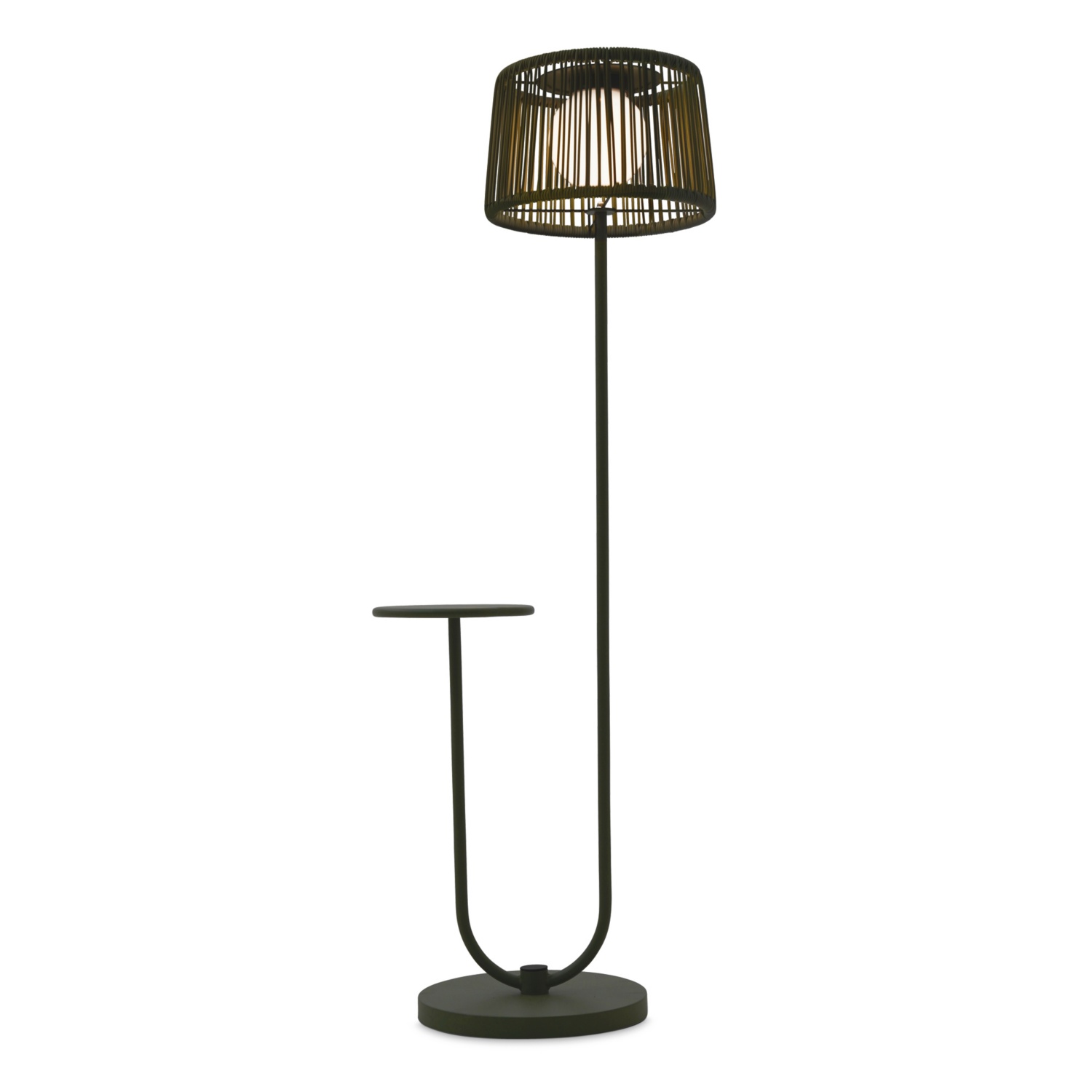Diese ausgefallene Stehlampe mit zusätzlichem Ablagetisch ist ein Highlight in jedem Außenbereich.