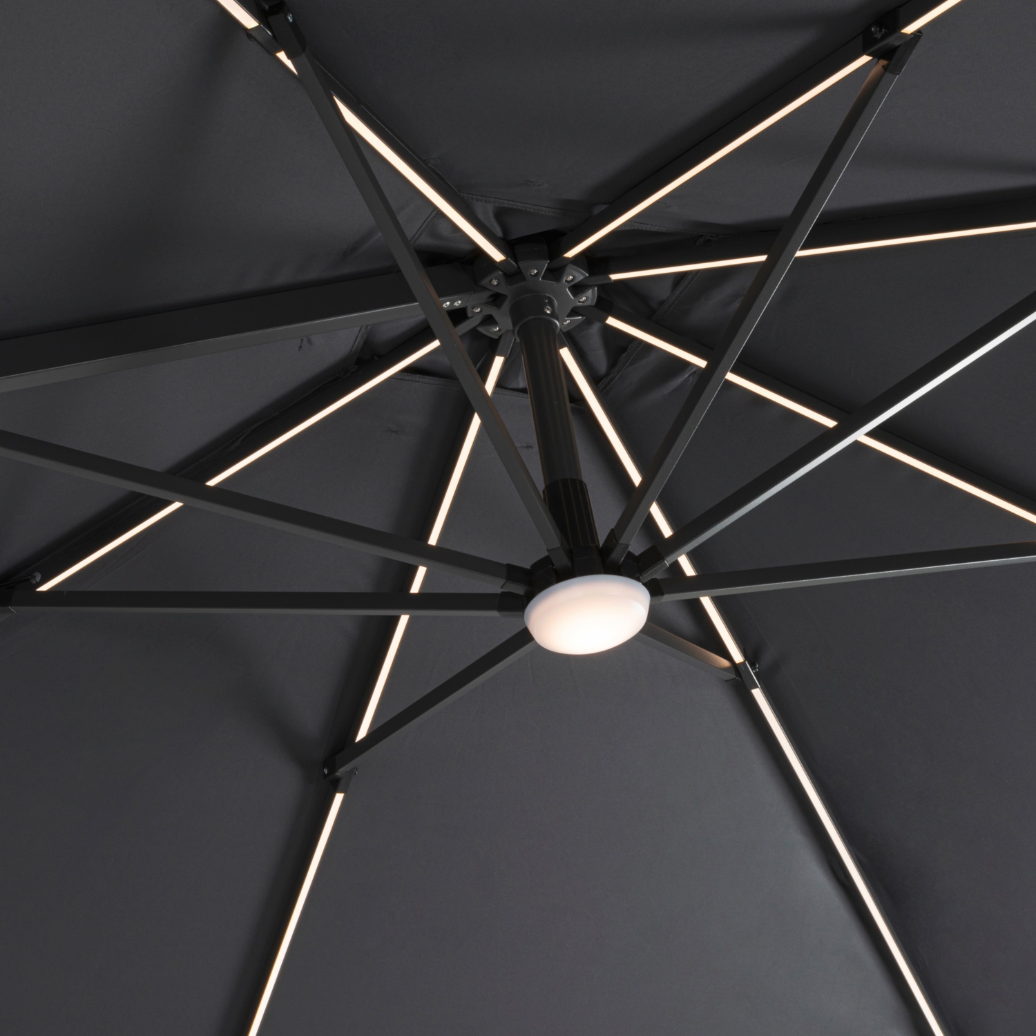 • LED-Streifen in den Schirmstreben integriert
