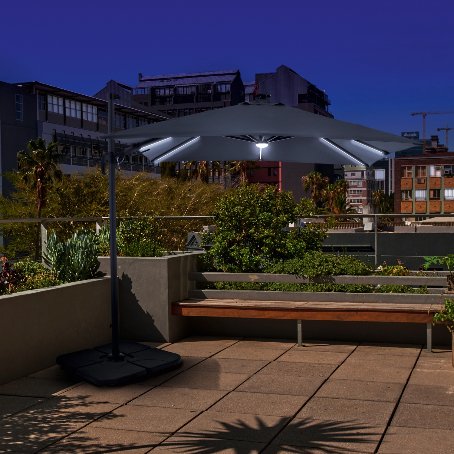 • inkl. Schirmständerkreuz für 4 Waschbetonplatten (Platten im Lieferumfang nicht enthalten)