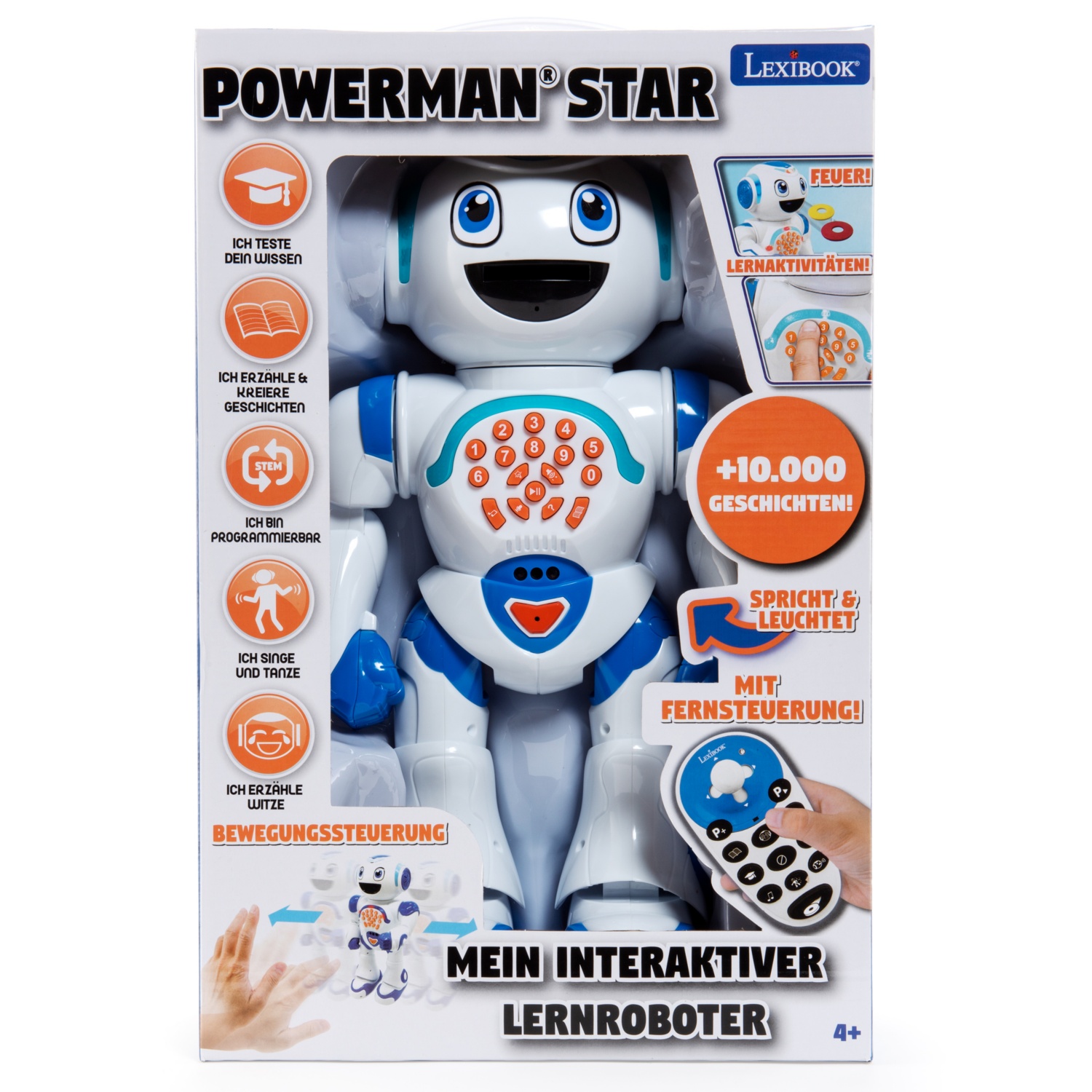 • erzählt tolle Geschichten und Witze, spielt Musik, tanzt und bewegt sich, folgt Handzeichen und lässt sich per Fernbedienung in alle Richtungen steuern, schießt Schaumstoffscheiben…