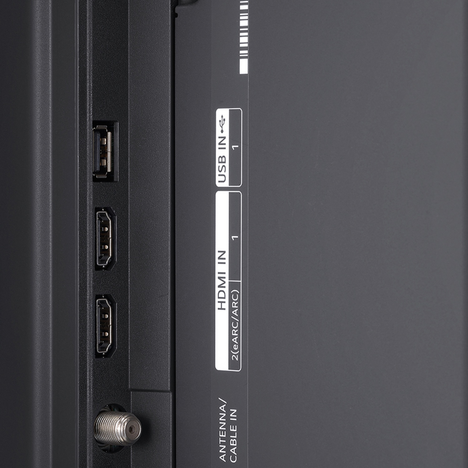• 3 x HDMI, 2 x USB, LAN, Simplink (HDMI CEC), digitaler optischer Audioausgang, 2 x RF-Eingang (seitlich, RF/SAT)