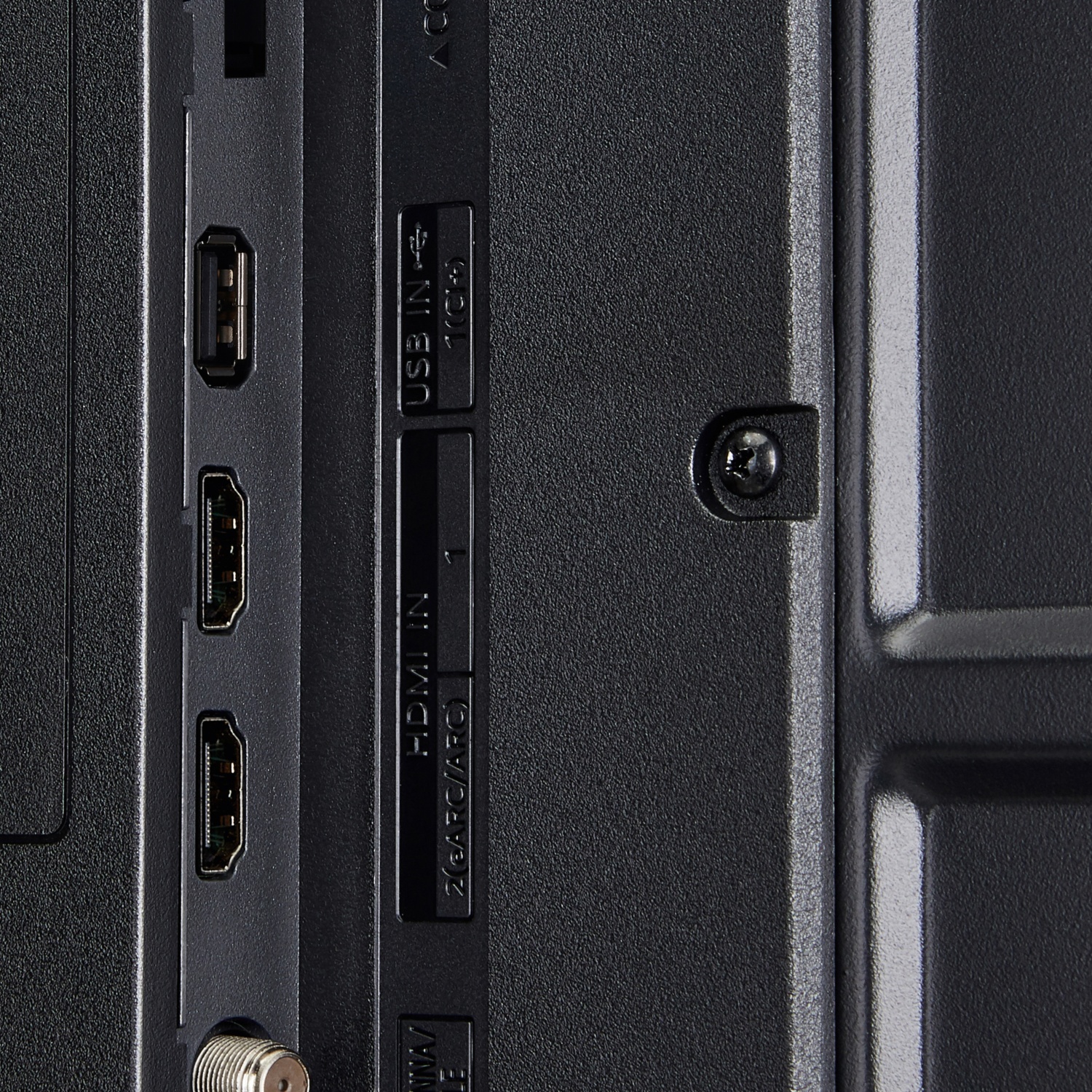 • 3 x HDMI, 2 x USB, LAN, Simplink (HDMI CEC), digitaler optischer Audioausgang, 2 x RF-Eingang (seitlich, RF/SAT)