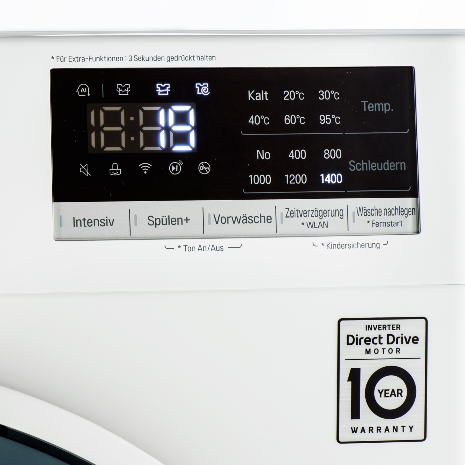 • Zusatzfunktionen: z. B. Vorwäsche, Wäsche nachlegen