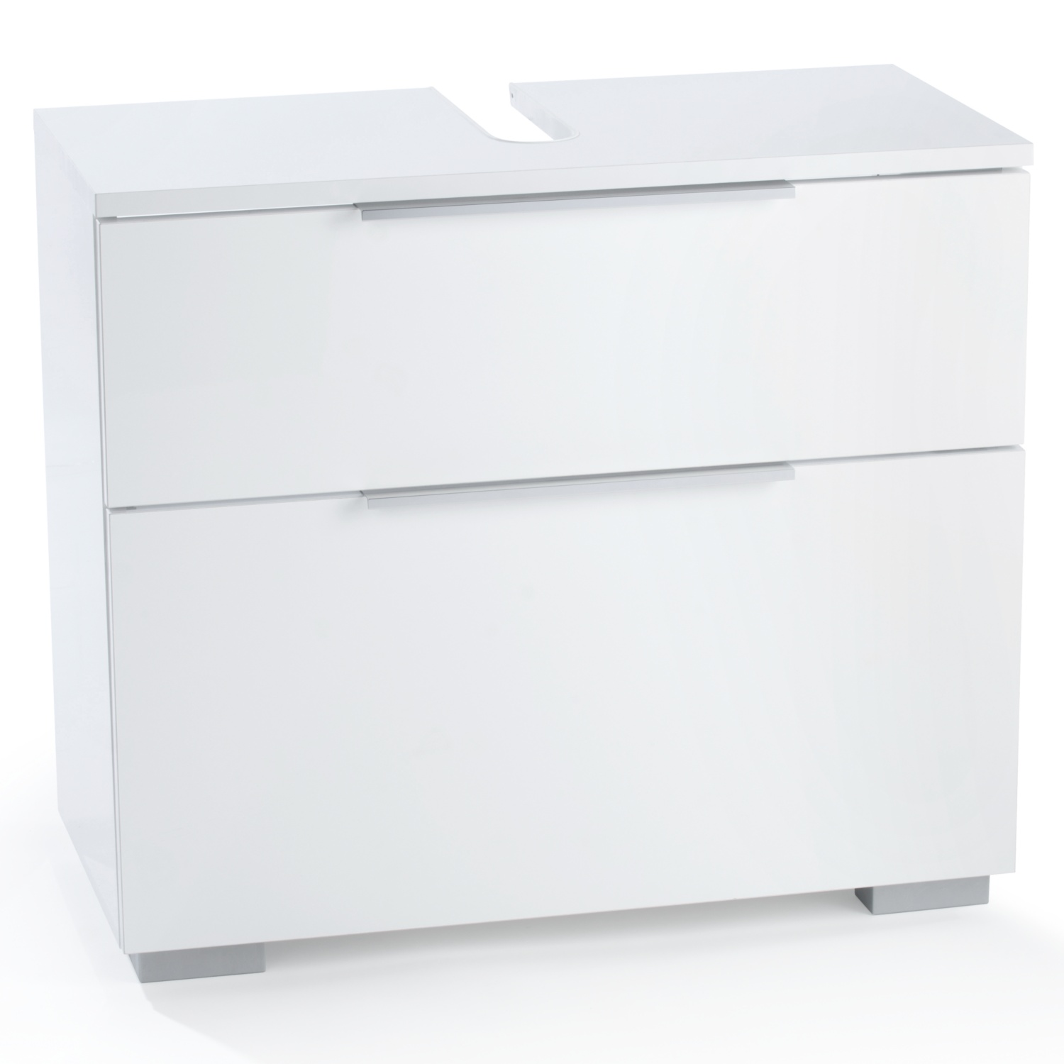 • Außenseiten, Oberplatte und Fronten hochglanz weiß lackiert