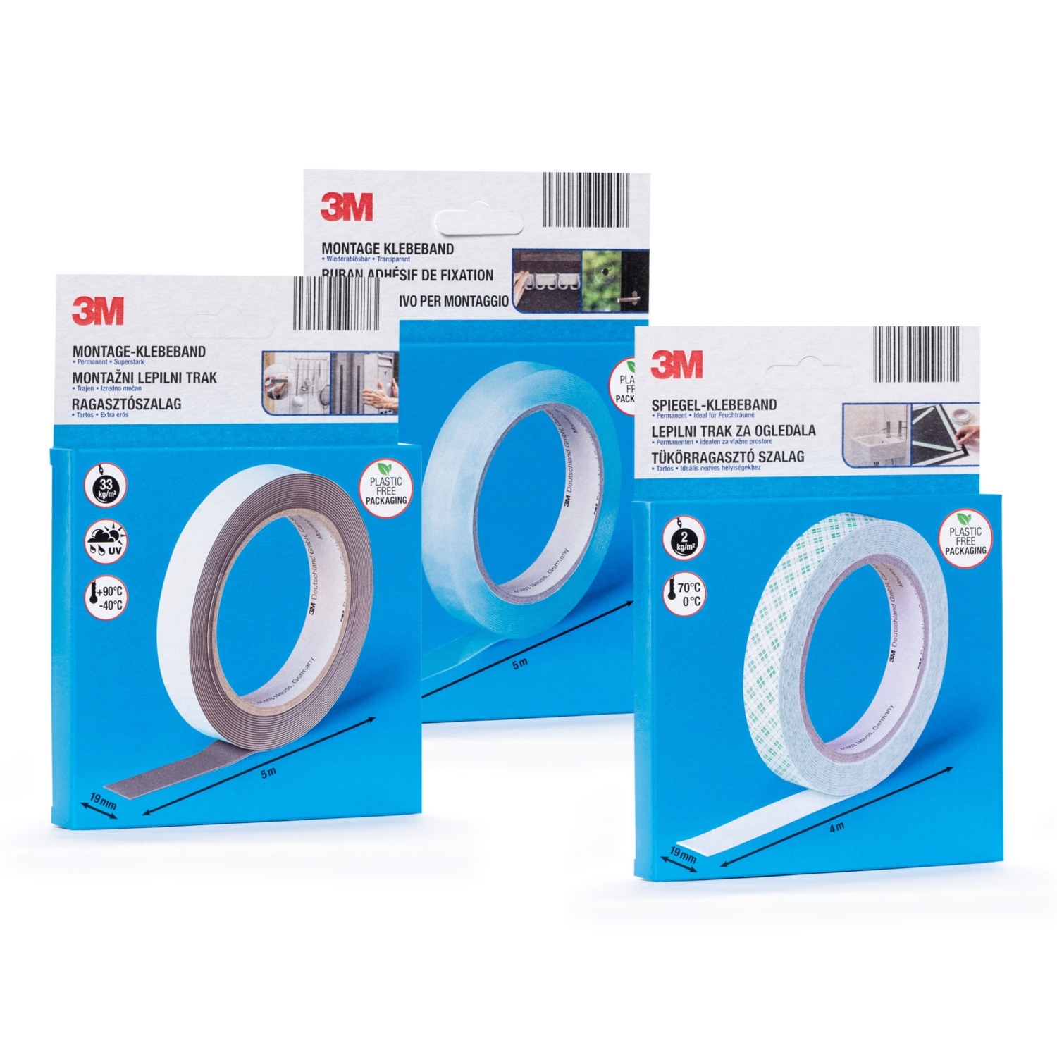 • Montageband, ablösbar:temperaturbeständig von -40 bis +80 °C, transparent, Tragkraft: 25 kg/m², für den Innen- und Außenbereich geeignet, wetterfest und UV-beständig oder