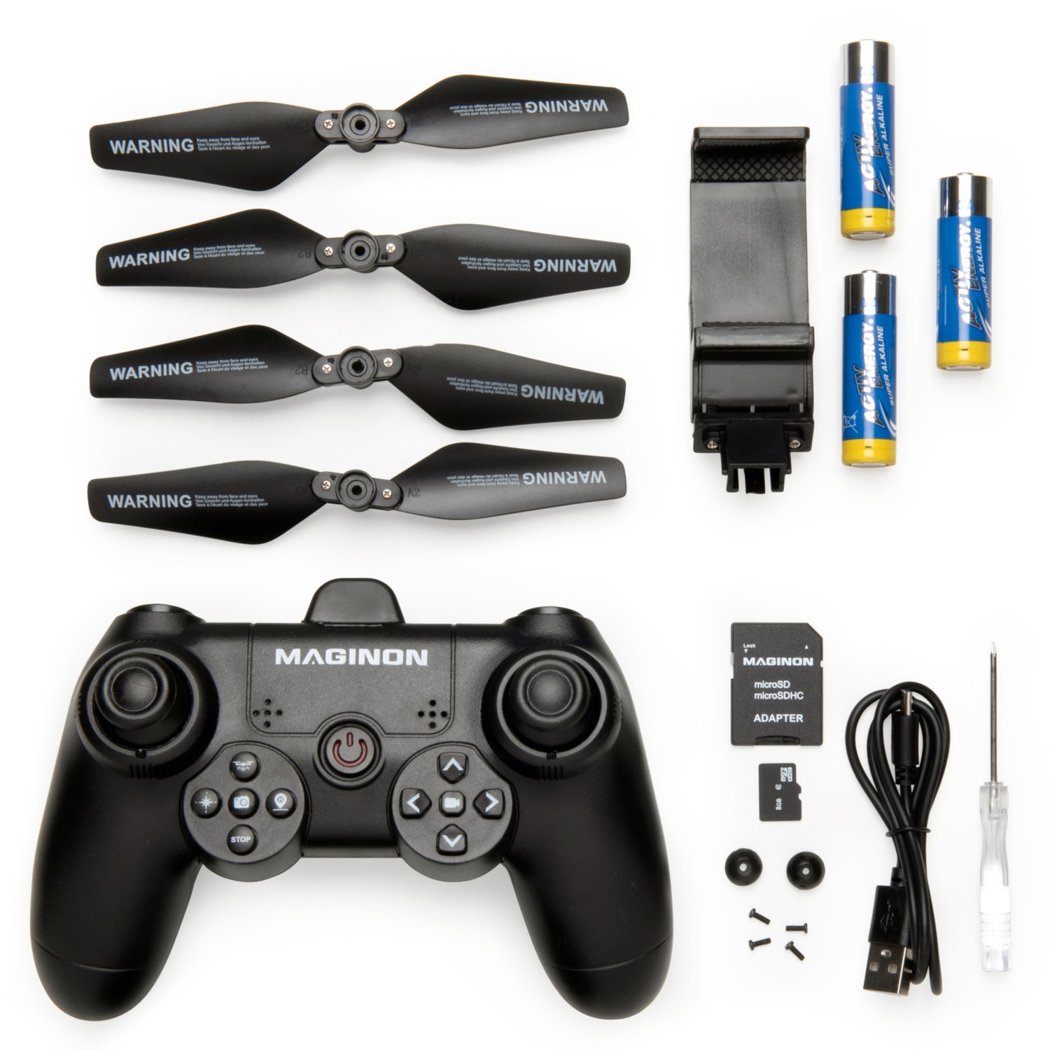 • inkl. 8 GB Speicherkarte, USB Ladekabel, Batterien, Akku und 4 Ersatz-Rotorblätter