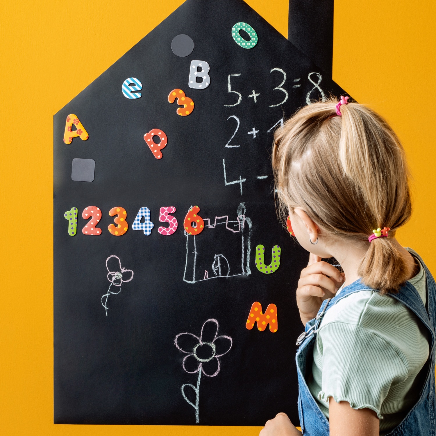 haftet auf ebenen Flächen wie z.B. auf einer Wand oder auf einer Tür und ist mit Kreide beschreibbar