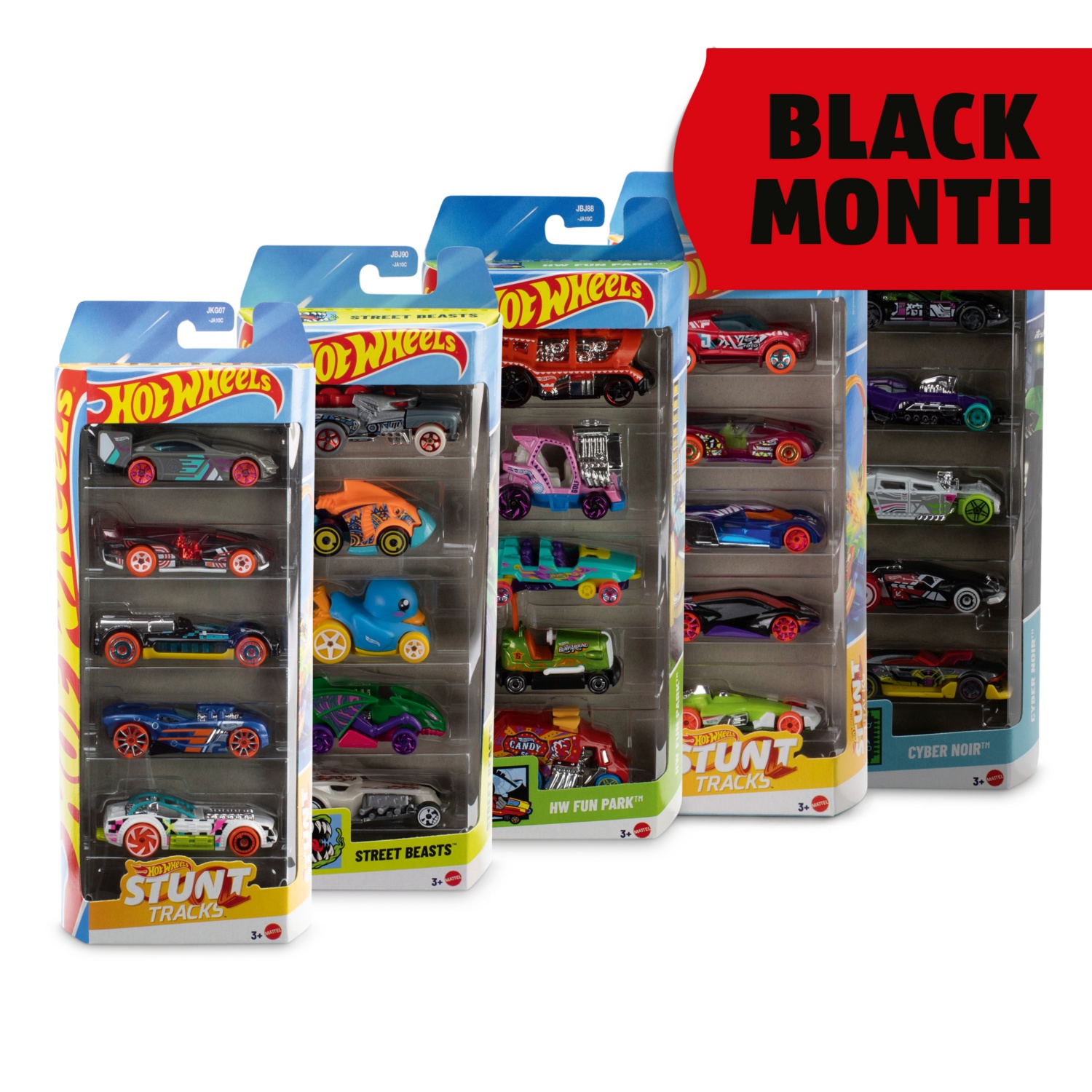 Gebt Gas bei jeder Hot Wheels Sammlung mit einem 5er-Pack verschiedener Fahrzeuge im Maßstab 1:64. Jedes Metallspielzeugauto oder -lastwagen verfügt über authentische Details und auffällige Designs, die Kinder und Sammler gleichermaßen begeistern. Diese Packs haben jeweils ein spezielles Thema, das sowohl Sammler als auch Autoenthusiasten anspricht. Die Fahrzeuge eignen sich perfekt zum Spielen oder Ausstellen – Kinder und Sammler werden sie alle haben wollen. Jeder Pack wird einzeln verkauft. Solange der Vorrat reicht. Stile, Farben und Dekorationen können variieren.