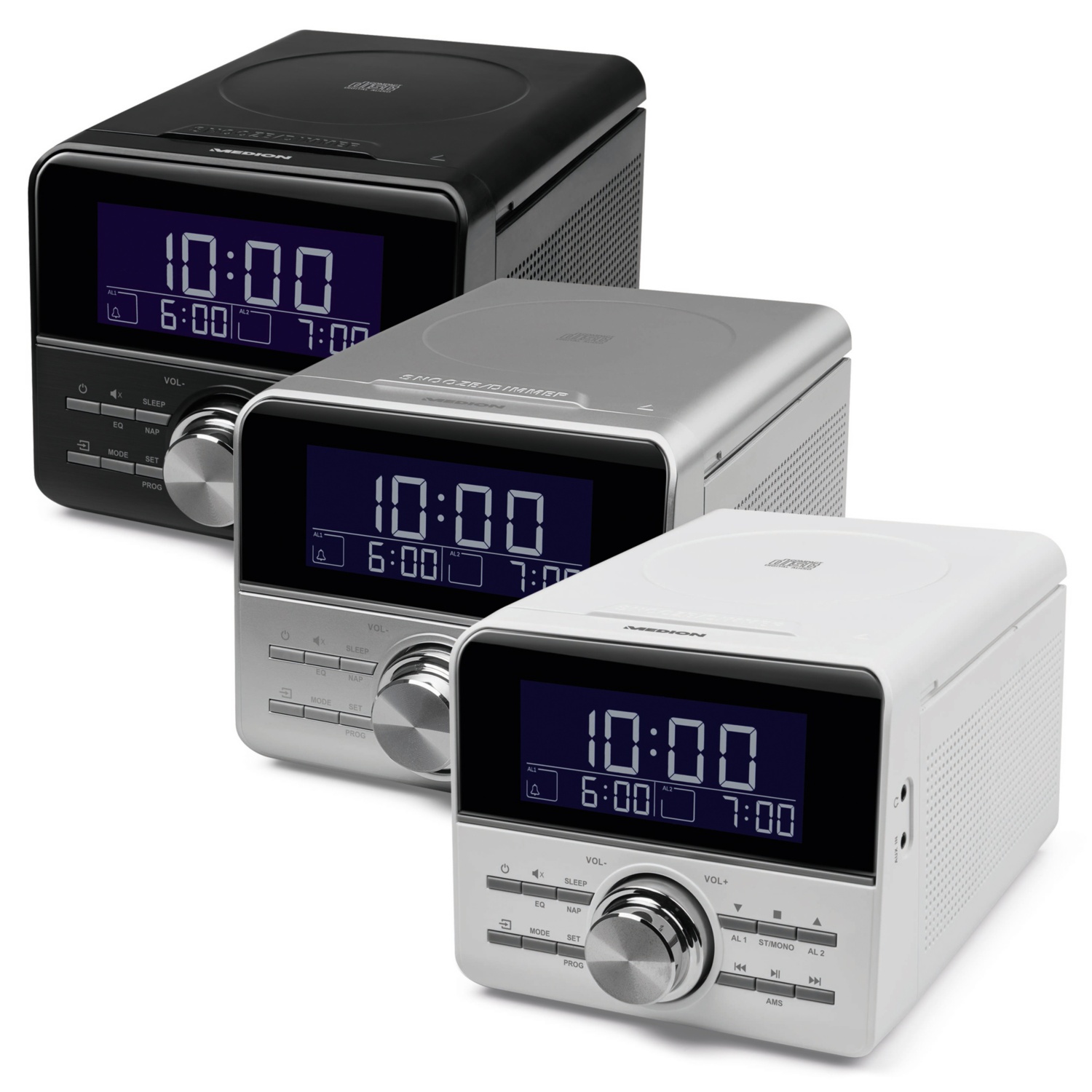 mehrere Weckzeiten, Wecken durch CD, Radio oder Alarmton