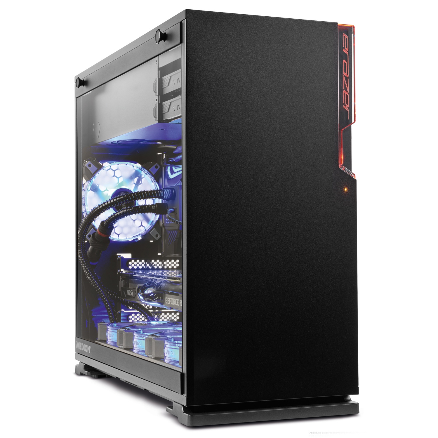 Cool bleiben dank sensationeller Wasserkühlung: Während bei herkömmlichen PCs Ventilatoren die Kühlung der CPU übernehmen, wird das beim MEDION® ERAZER® Hunter X10 von einer Wasserkühlung erledigt – und zwar nicht von irgendeiner: Die Eisbaer 240 von Alphacool revolutioniert den All-in-one- Kühler-Markt, indem sie einen Kupferradiator hat, modular aufgebaut ist und somit jederzeit erweitert, umgebaut oder nachbefüllt werden kann. Sie ist noch leiser und leistungsstärker als die durchschnittliche Alphacool Eisbaer 240 CPU Wasserkühlung All-in-one-Lösung.Bitte beachten Sie, dass die „HOFER liefert“-Aktionsartikel, im Unterschied zu unserem dauerhaft erhältlichen Sortiment, nur in begrenzter Anzahl zur Verfügung stehen. Abgabe nur in Haushaltsmengen und solange der Vorrat reicht. Sollten bestimmte Produkte, trotz sorgfältiger Planung, aufgrund unerwartet hoher Nachfrage, am ersten Aktionstag ausverkauft sein, bitten wir um Verständnis. Alle Artikel ohne Dekoration. Die Abbildungen verstehen sich als Symbolfotos. Bei Preissenkungen ist die Angabe der %-Senkung kaufmännisch gerundet. Der PIN-Printing-Bestellcode-Bon, der beim Kauf eines „HOFER liefert“-Artikels in unserer Filiale erstellt wird, kann (z.B. bei Verlust) nicht neu ausgestellt bzw. erstattet werden. Das diesbezügliche Risiko liegt beim Kunden. Beim Kauf eines „HOFER liefert“-Artikels in unserer Filiale handelt es sich nicht um einen Kauf im Fernabsatz. Die fernabsatzrechtlichen Bestimmungen kommen daher in Bezug auf diese Artikel nicht zur Anwendung. Beim Kauf eines neuen „HOFER liefert“ Elektro- oder Elektronikgeräts können Sie ein Altgerät, sofern dieses von gleichwertiger Art und Funktion ist, an einer Abgabestelle in unserem Sammelnetzwerk oder in jeder HOFER-Filiale unter Vorlage des Kaufbelegs Ihres neuen Geräts kostenlos abgeben. Eine Liste aller Abgabestellen finden Sie in unseren FAQs. Technische und optische Änderungen sowie Satz- und Druckfehler vorbehalten.