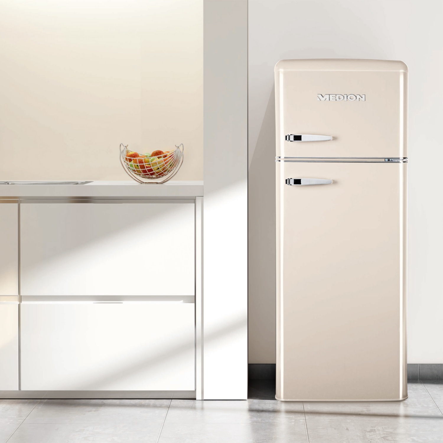 MEDION Retro-Kühl-/Gefrierkombination, Creme